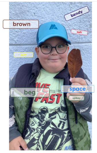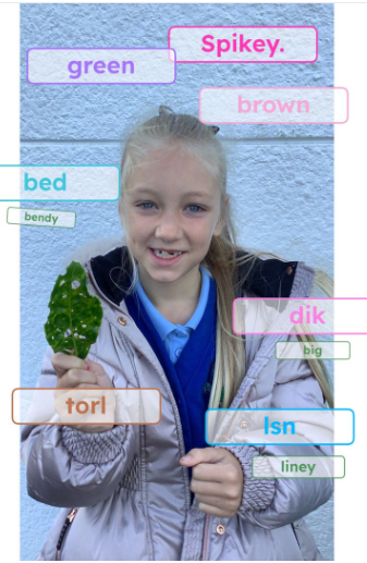 Dosbarth Horton had to search for their favourite looking leaves, have a friend take a picture of them holding it. Then use adjectives to describe it to help them write their shape poem.
