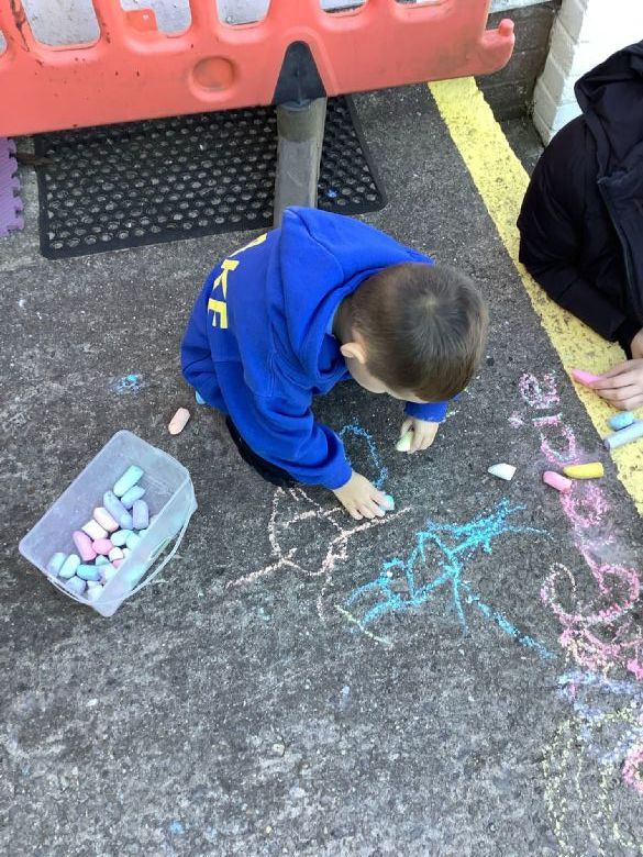 Our large chalk drawings. This is part of our '50 things' to do in Blaenymaes.