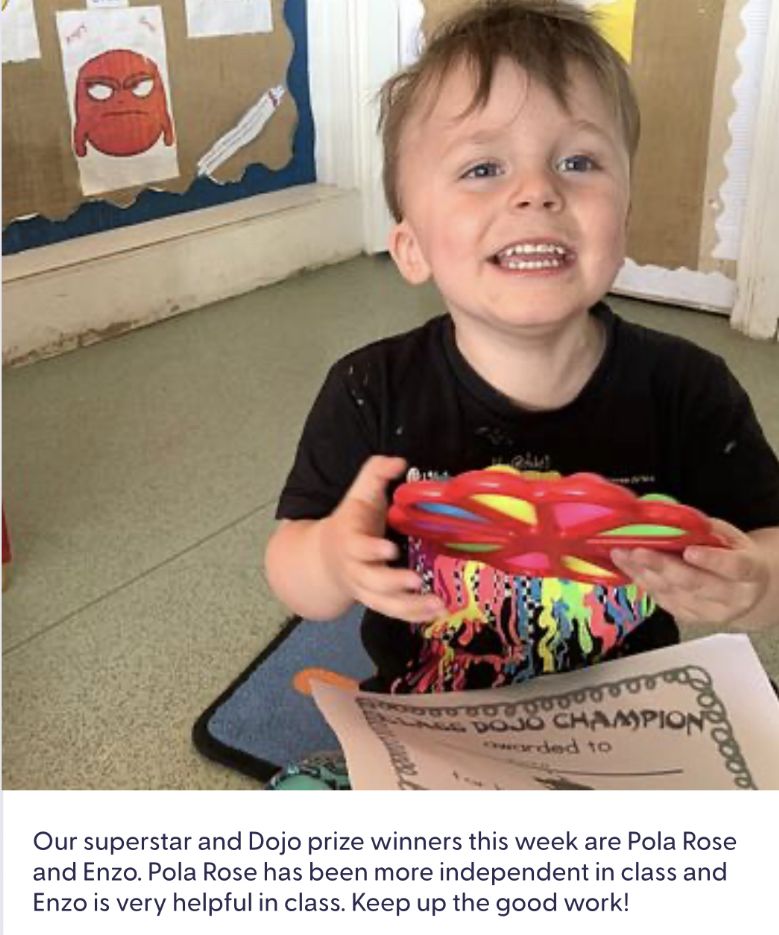 Our afternoon superstar and Dojo prize winners are Autumn and Lacie. Autumn plays nicely in class and Lacie has settled in really well. Keep up the good work!