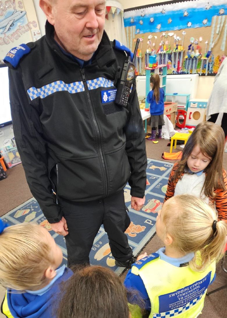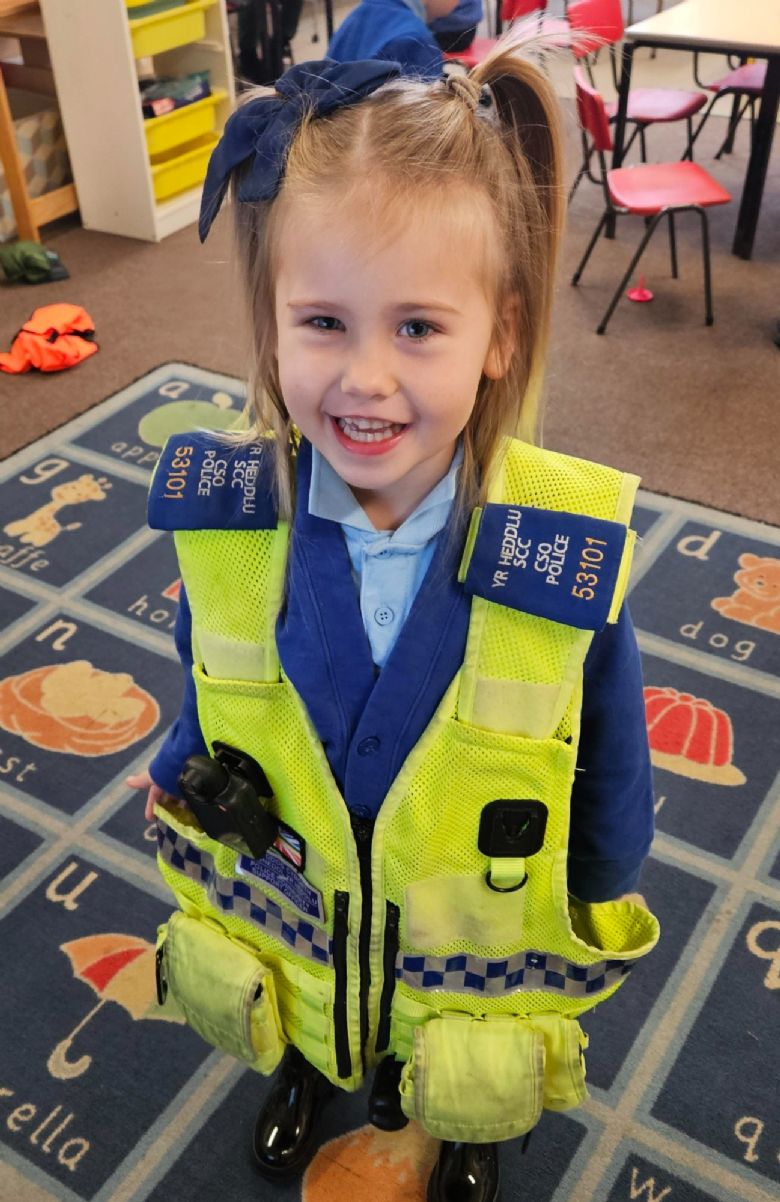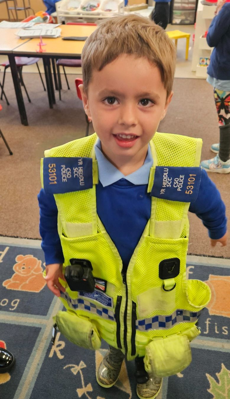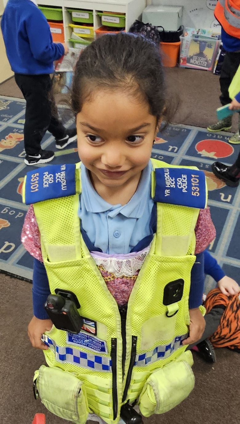 PC Steve came to visit us in class. We asked him questions about his job and he let us try on some of his uniform.