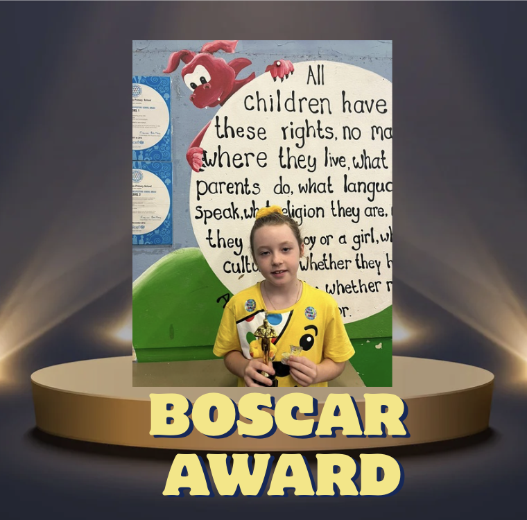 The Boscar was awarded to Amelia for her bravery and helping another pupil this week!