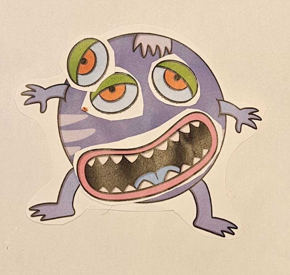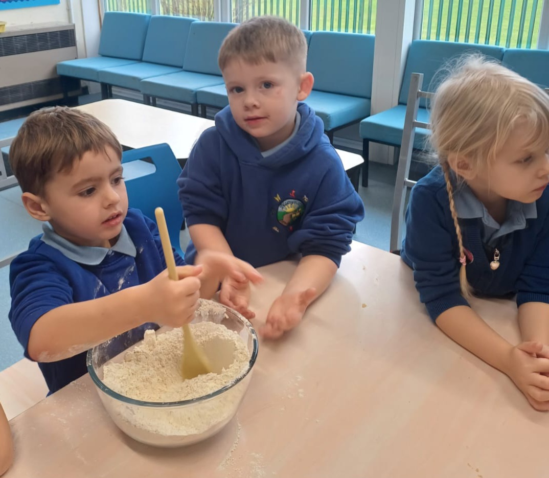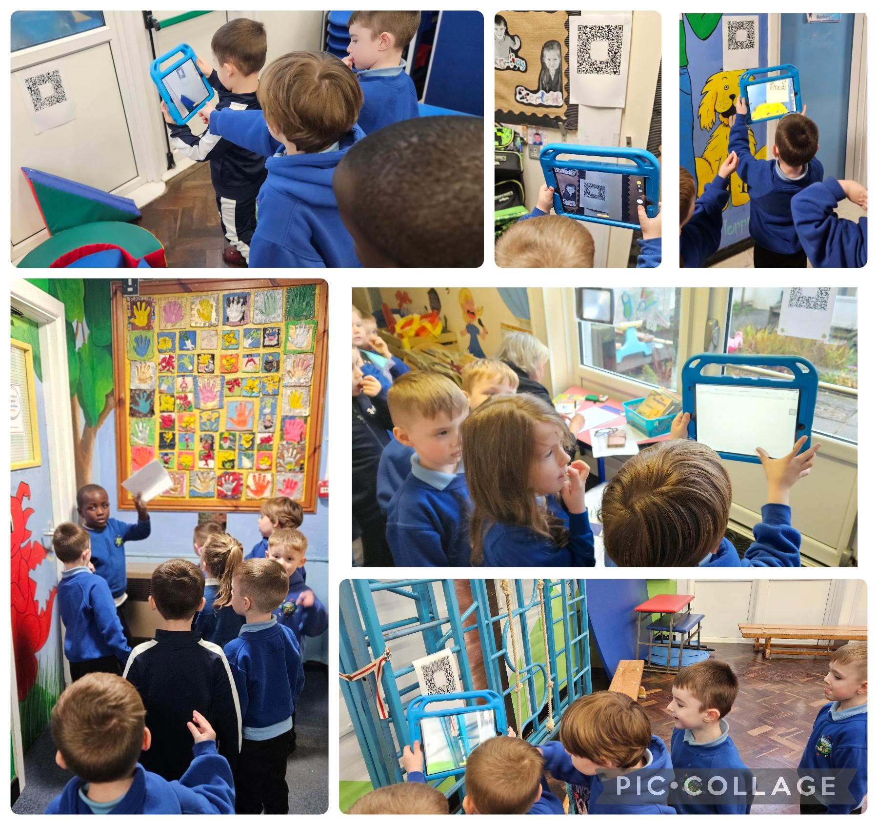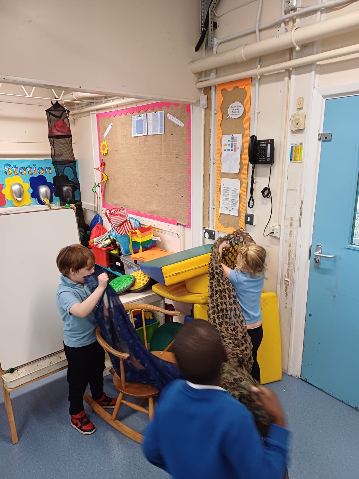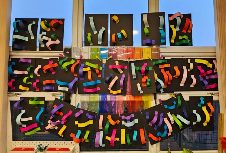 The story was about a little boy who helped the aliens. We practised our cutting and sticking skills to make our own alien characters.