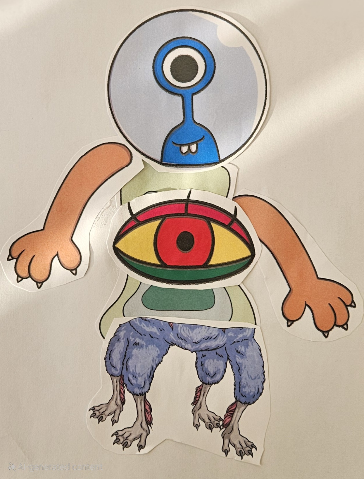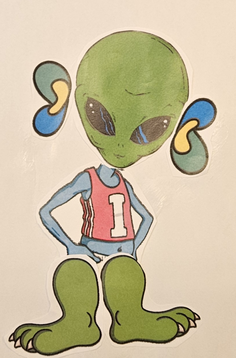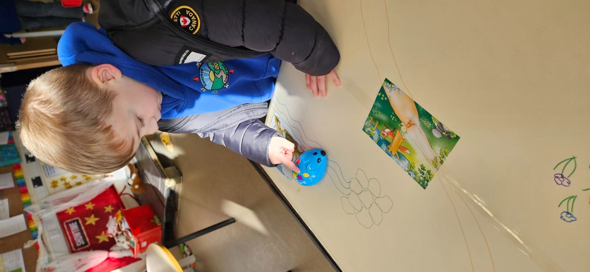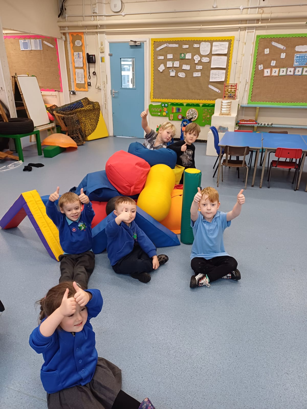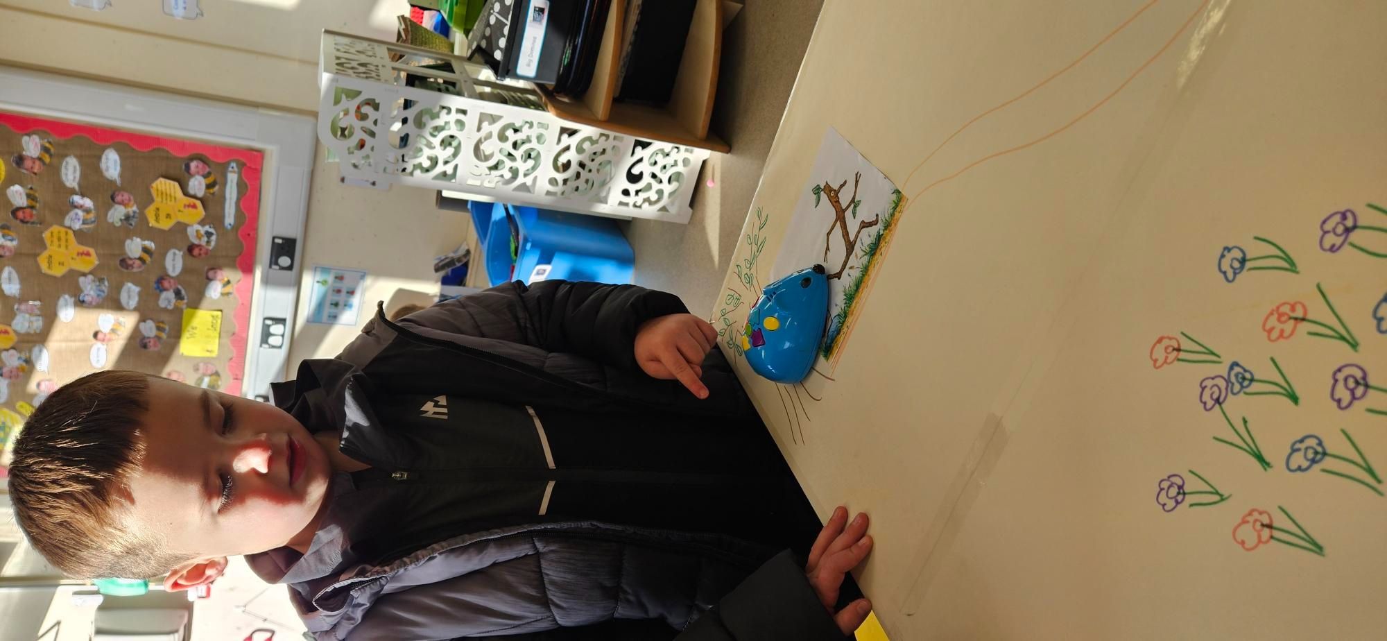 The story was about a little boy who helped the aliens. We practised our cutting and sticking skills to make our own alien characters.