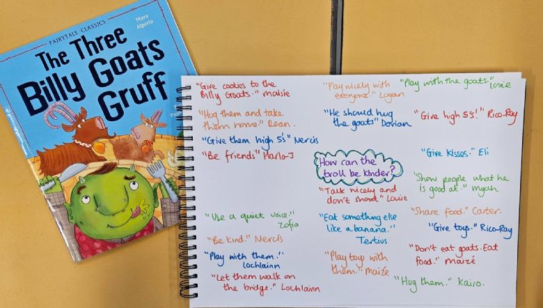 We read The Three Billy Goats Gruff and gave some ideas about how the Troll could be kinder.
