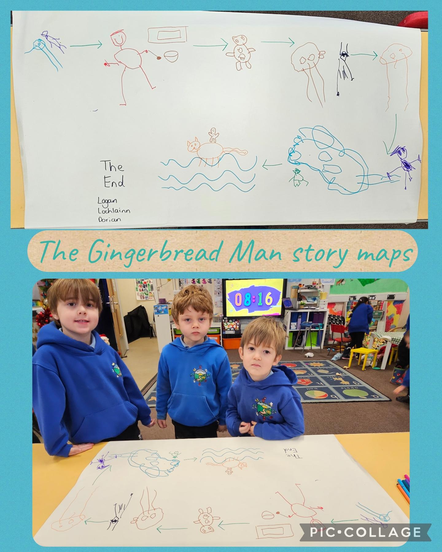 We read The Gingerbread Man story and worked in groups to create story maps.