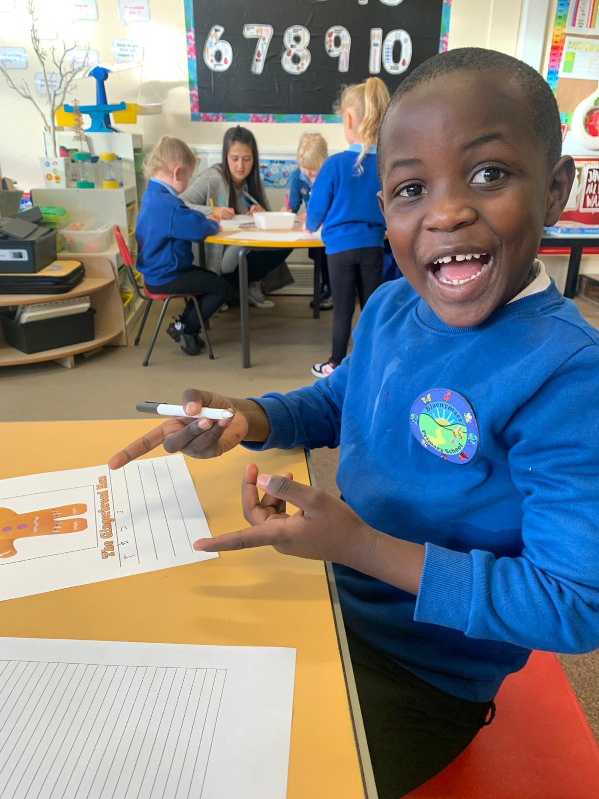 We then found a letter from the Gingerbread Man telling us that he had left some clues around the school to help us find him.