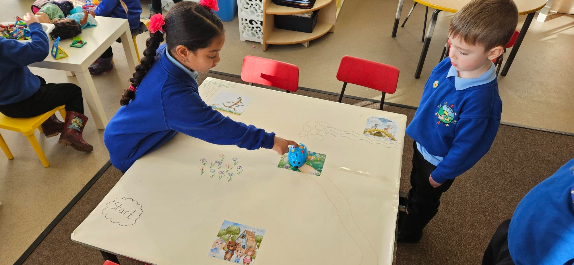 We gave instructions to the Coding Mouse to make him travel to different characters on the Fairytale Land map.