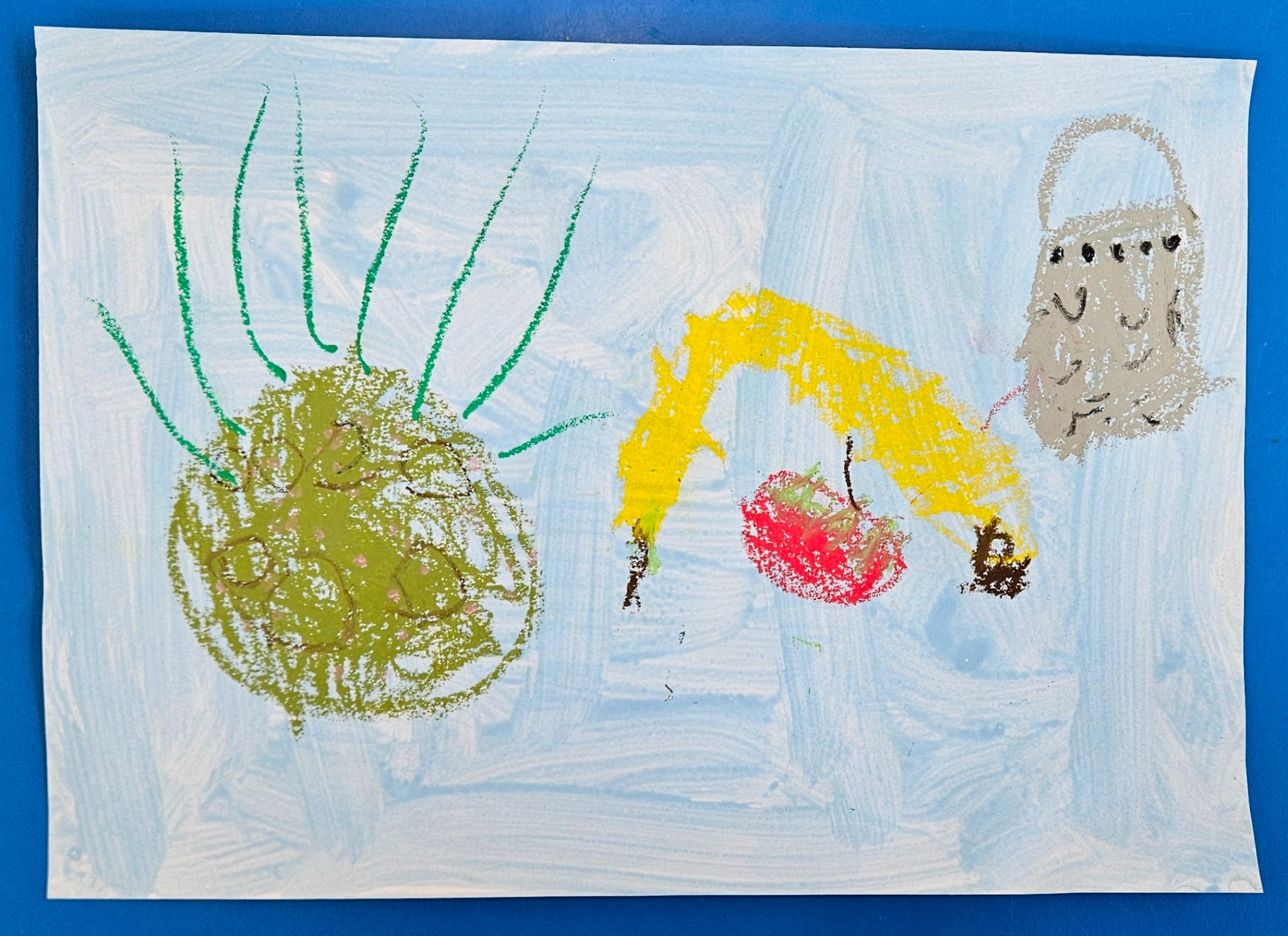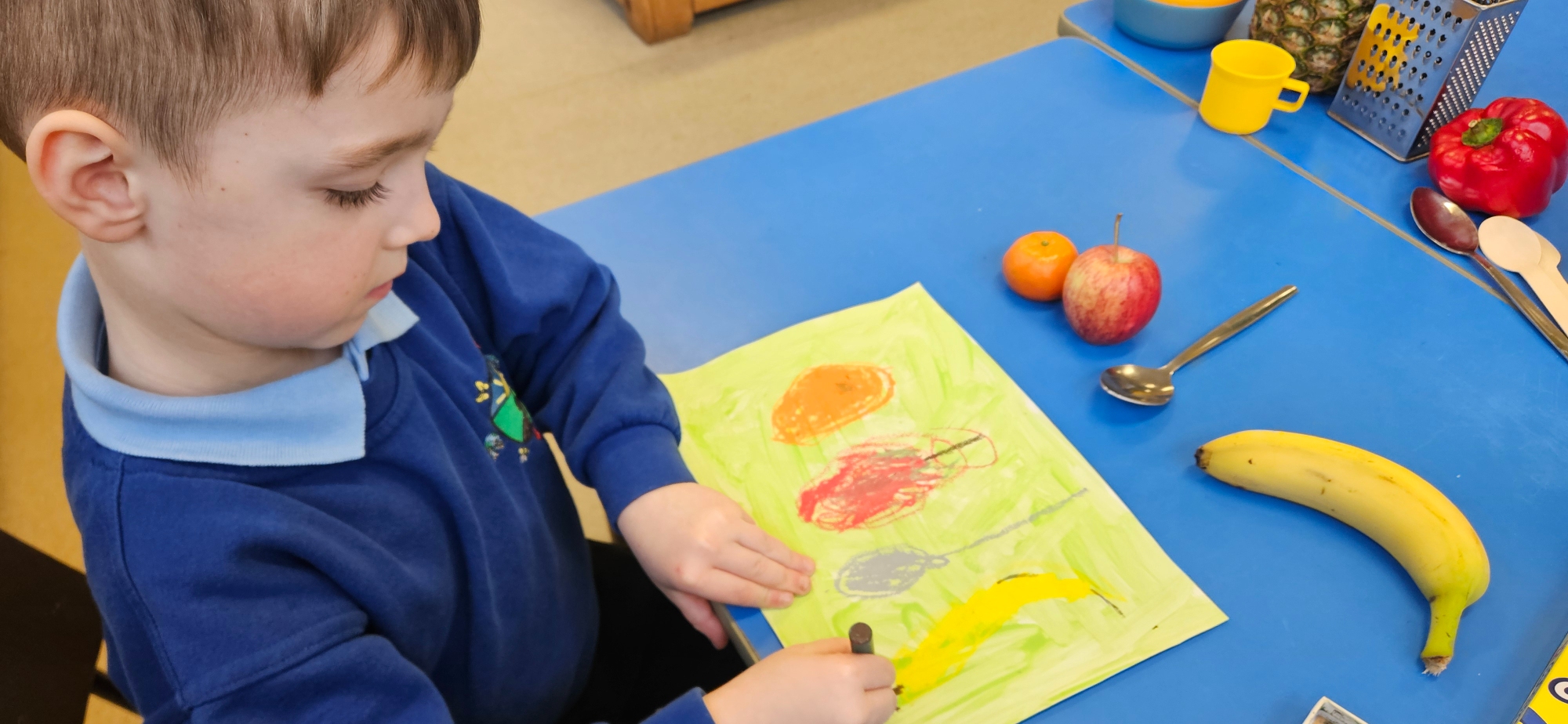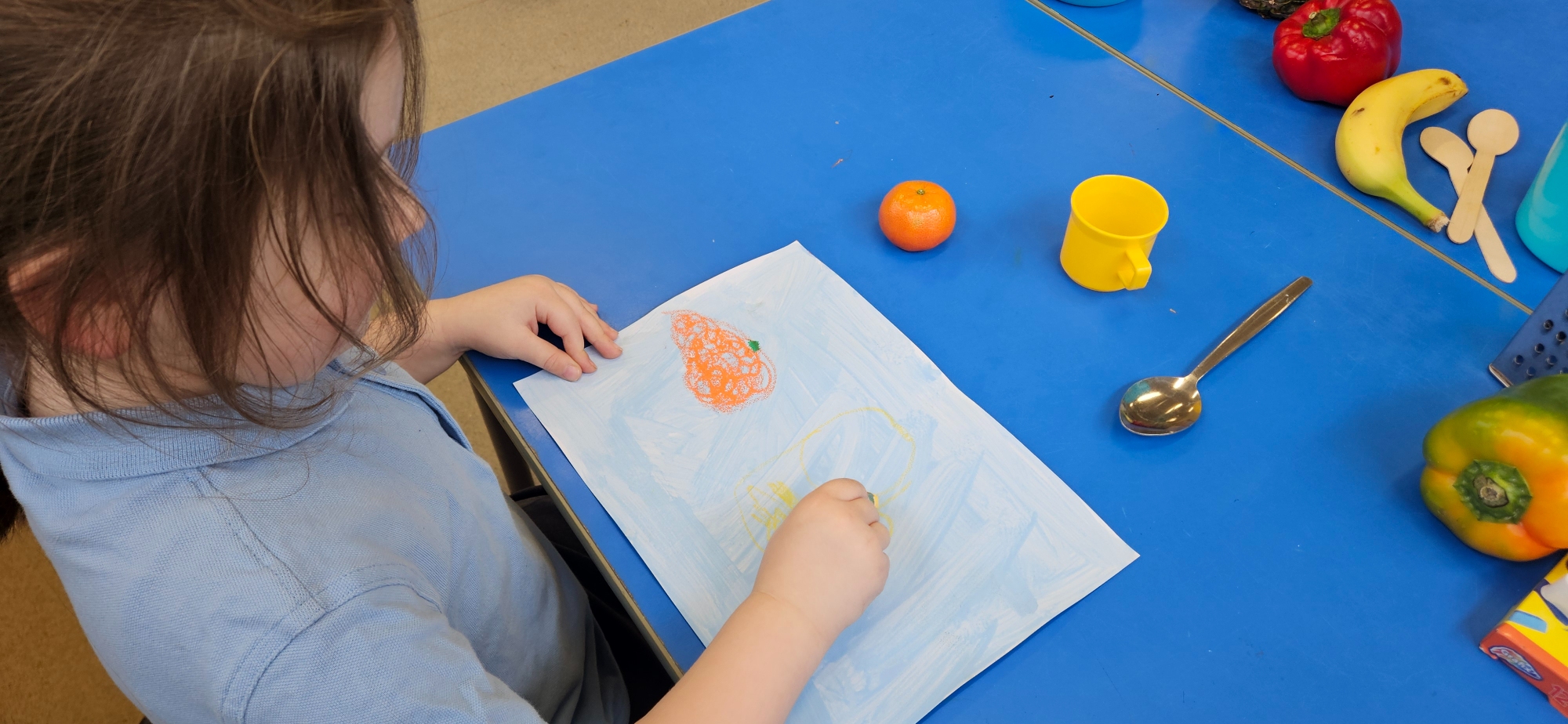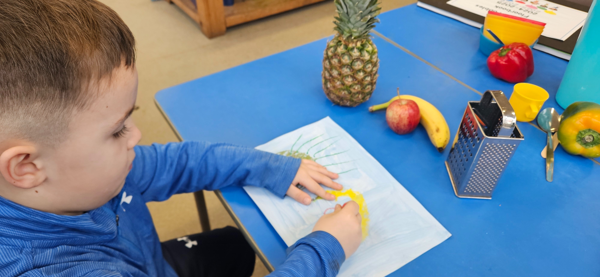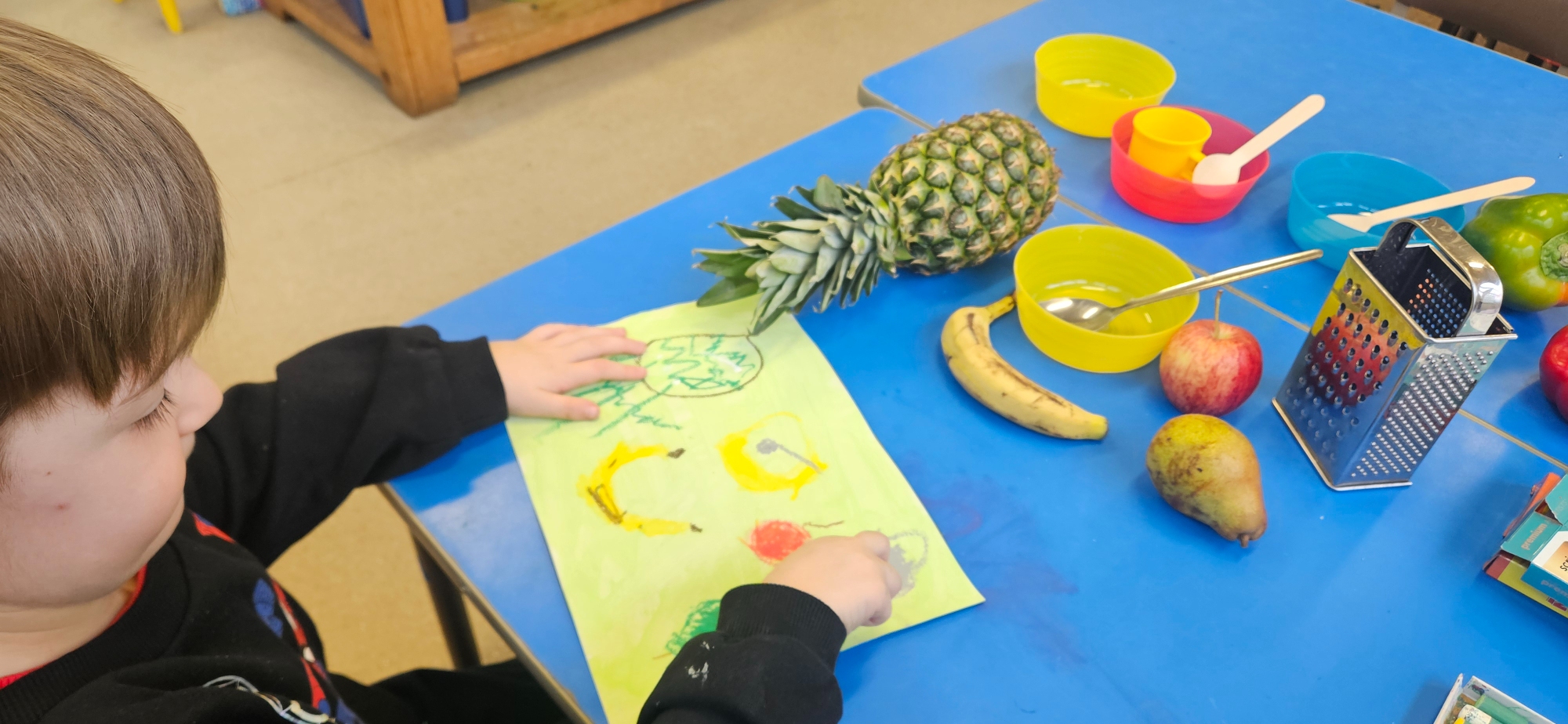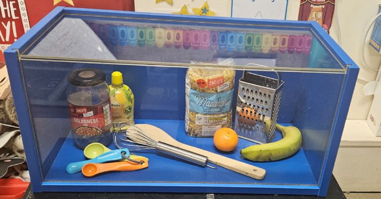 We had a curiosity box with food-themed items to help us talk about food and what we wanted to learn about it.