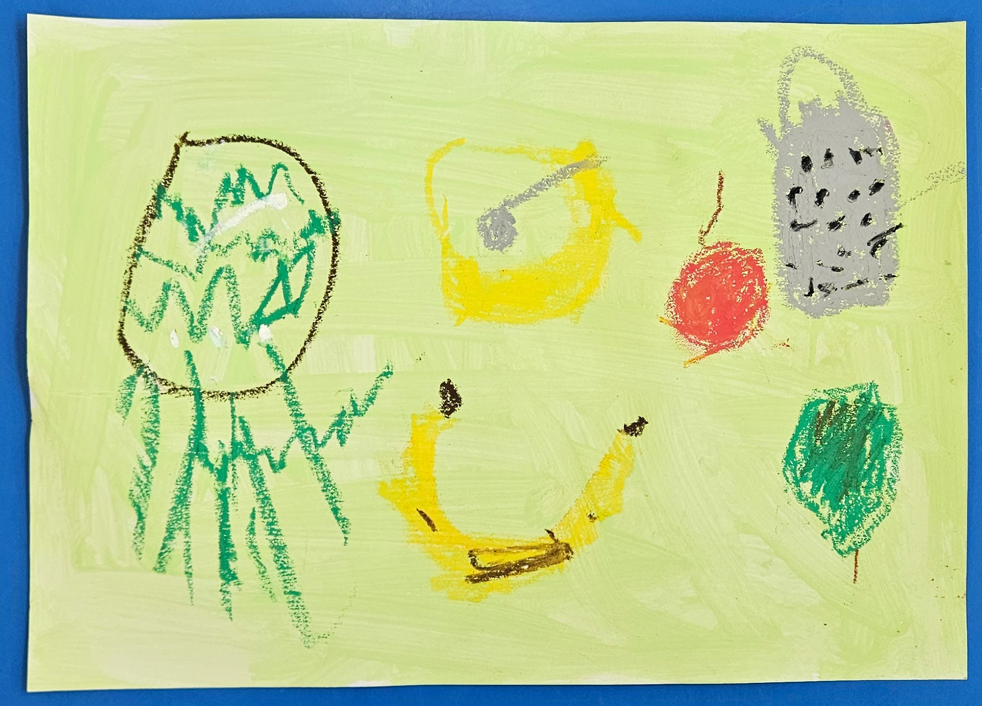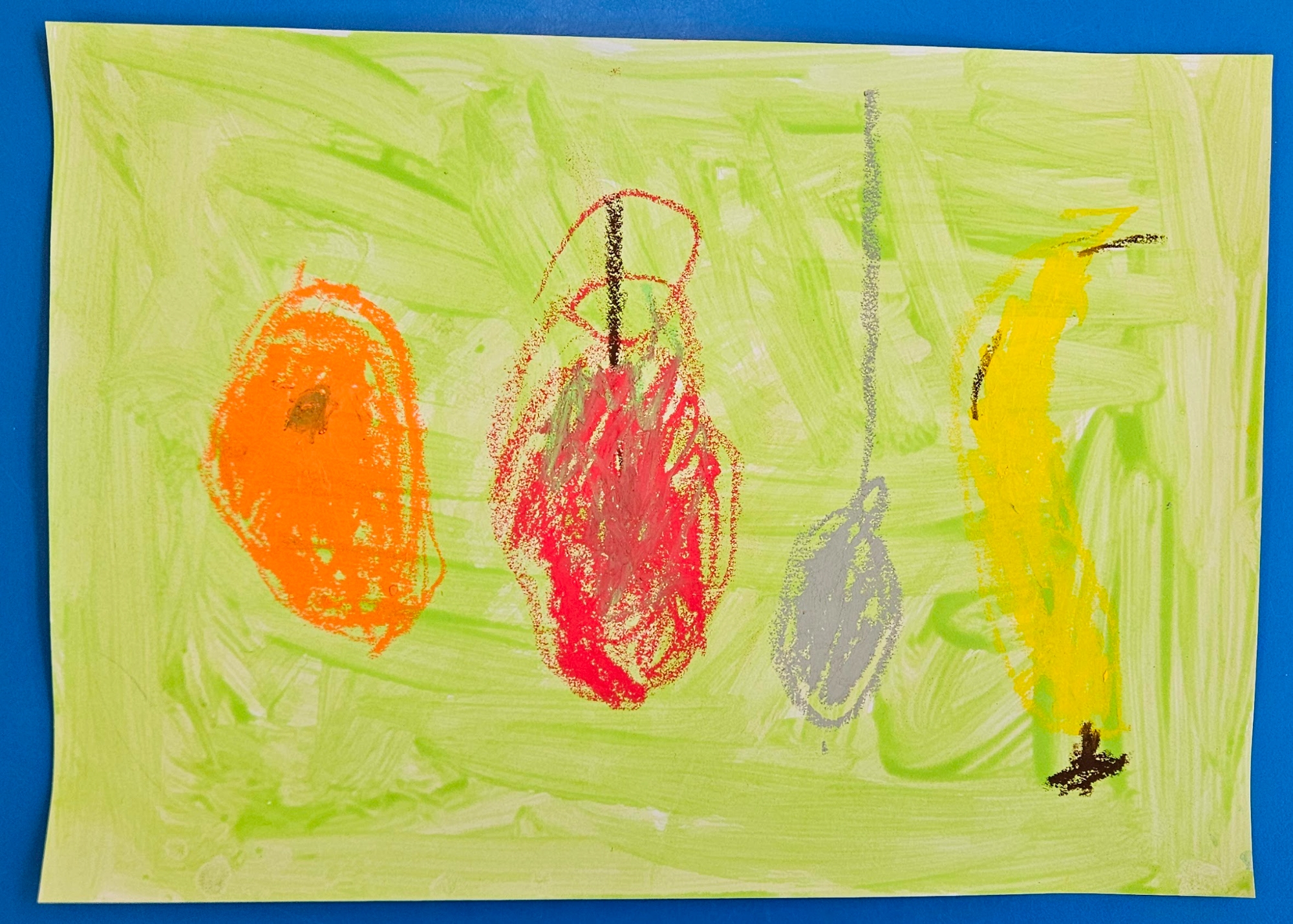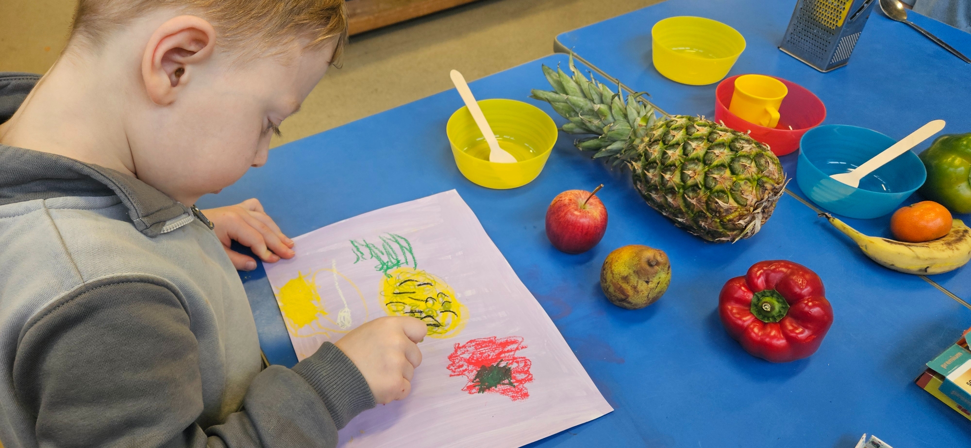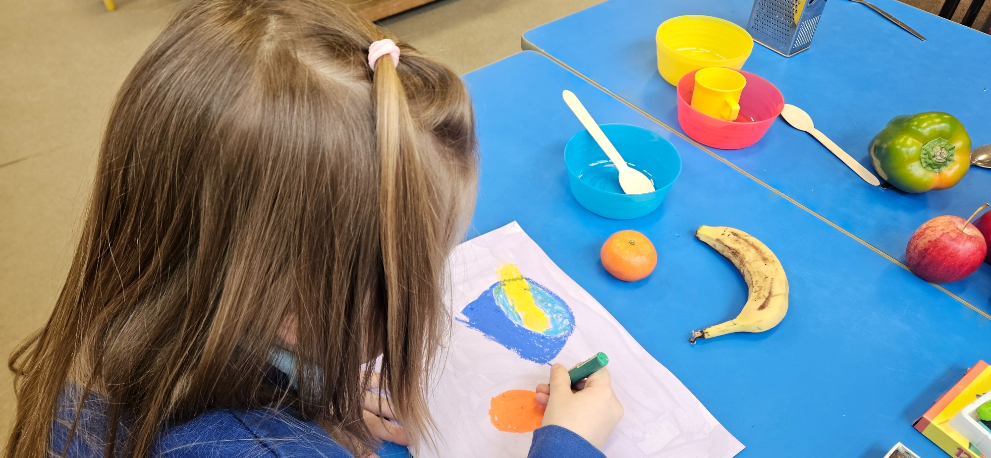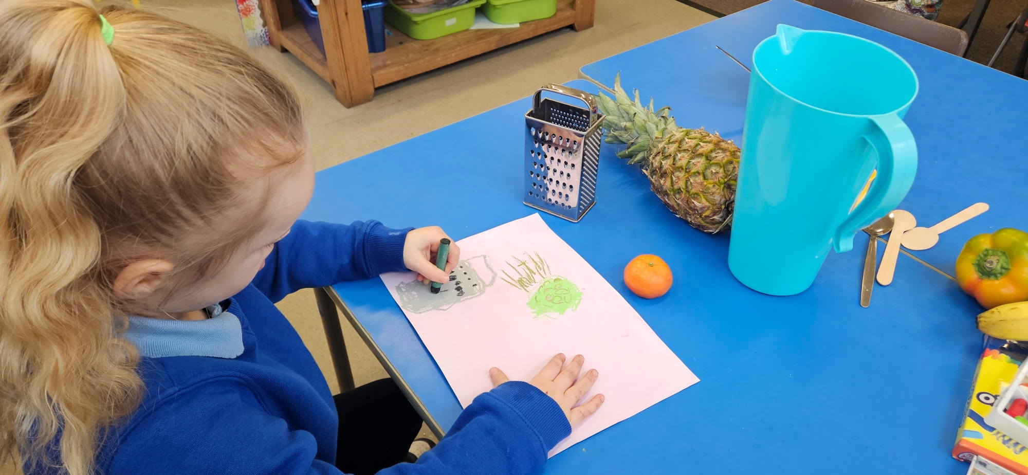 We had a curiosity box with food-themed items to help us talk about food and what we wanted to learn about it.