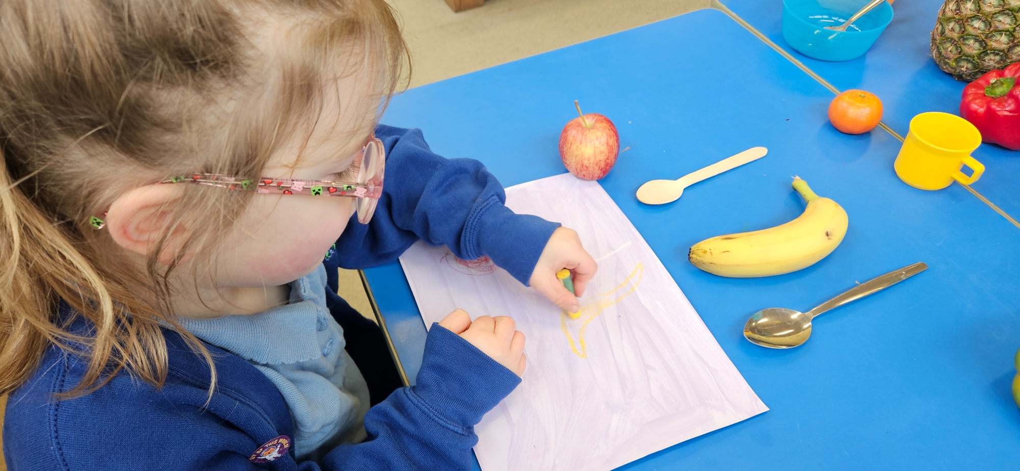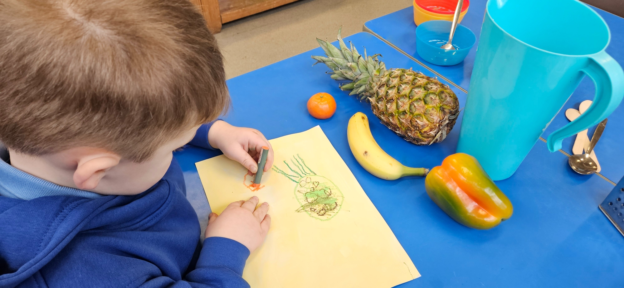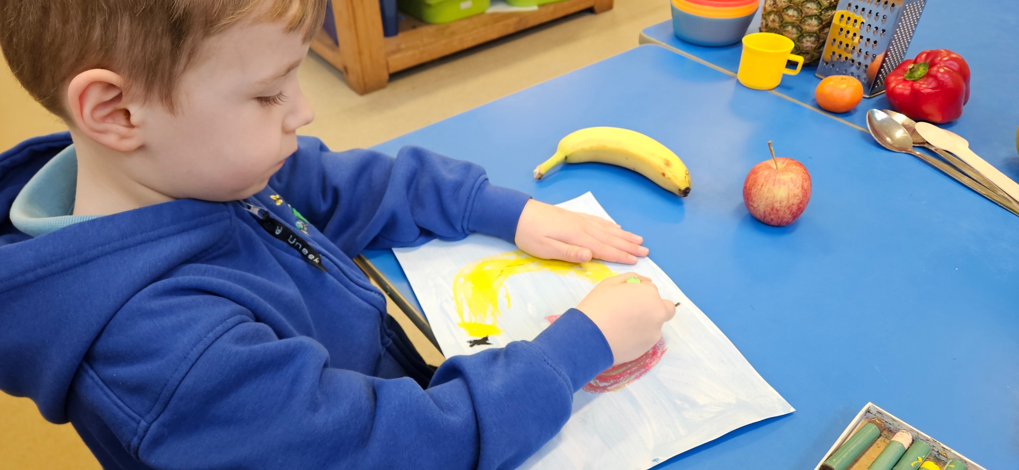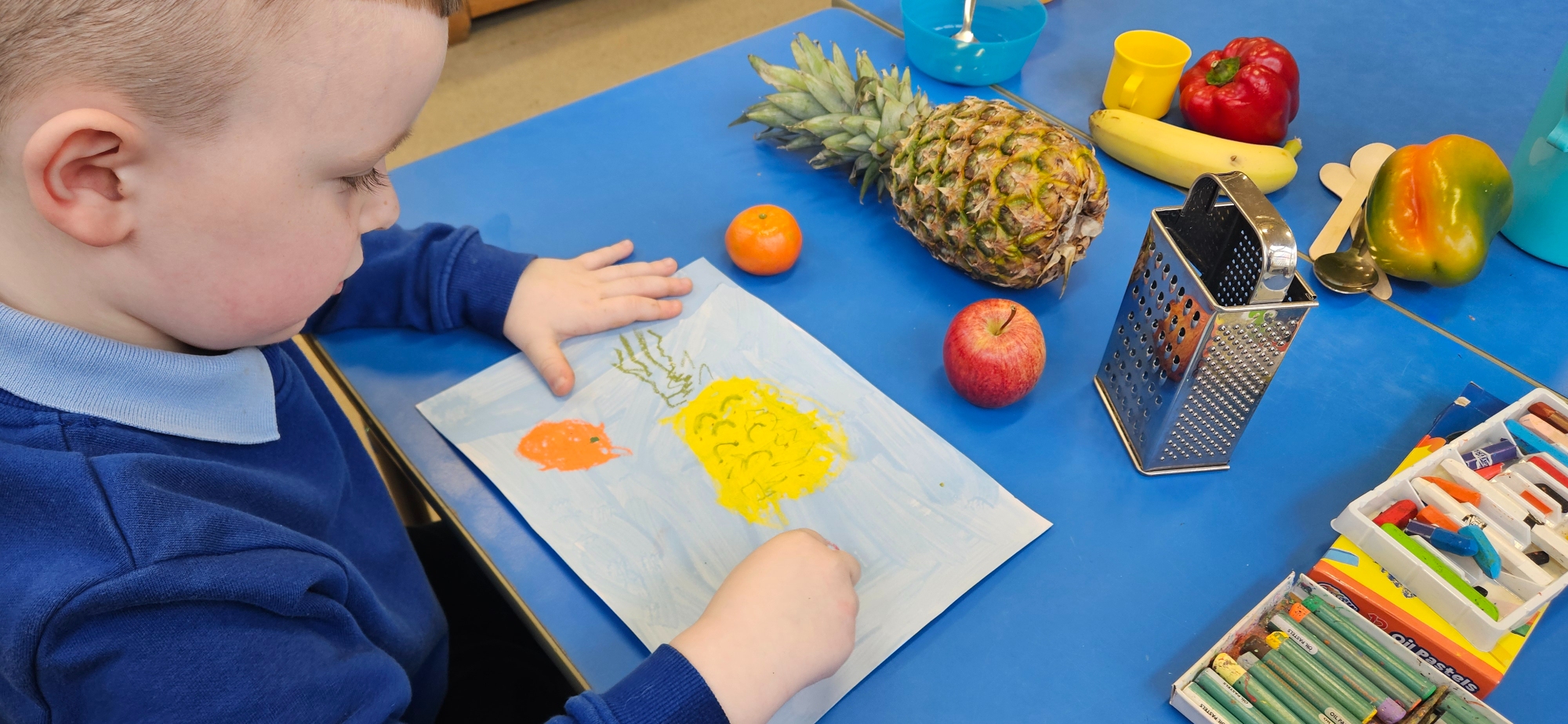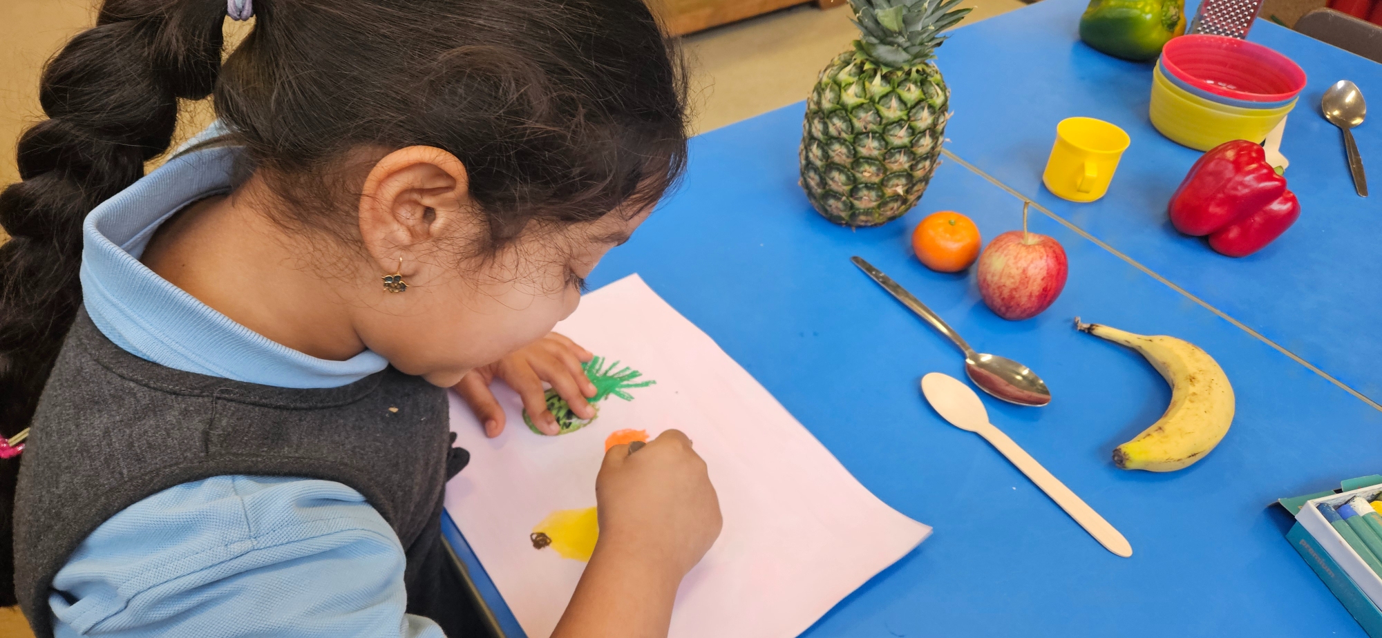 We had a curiosity box with food-themed items to help us talk about food and what we wanted to learn about it.