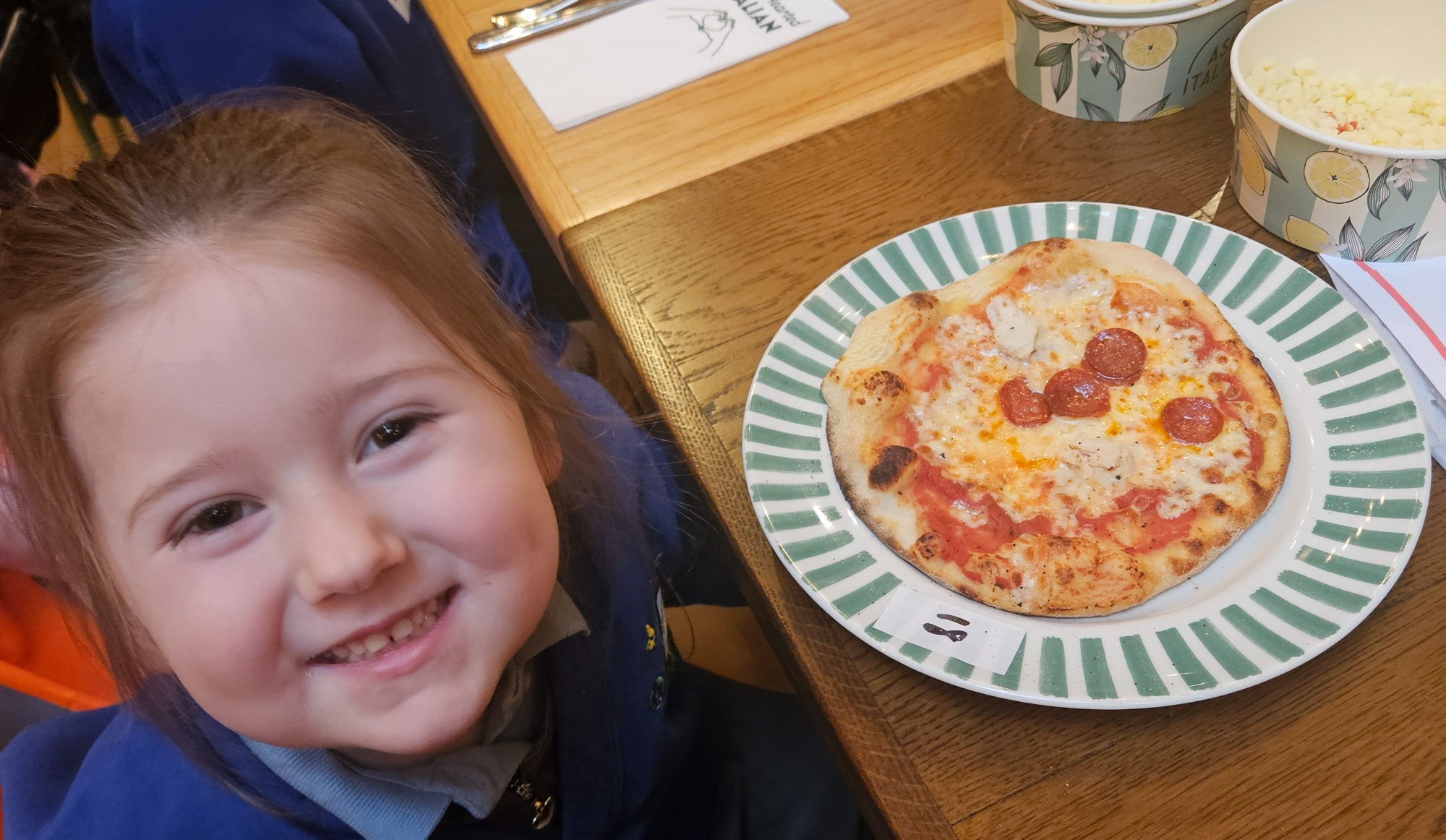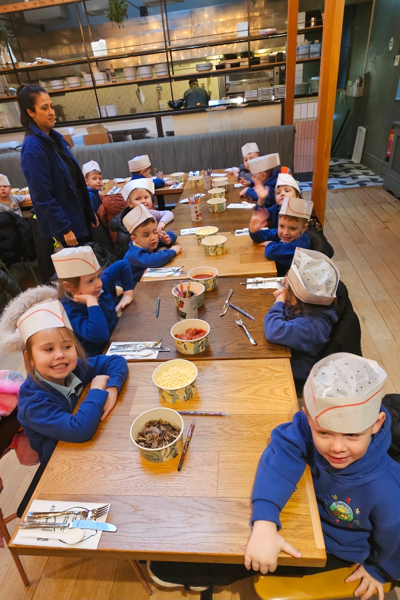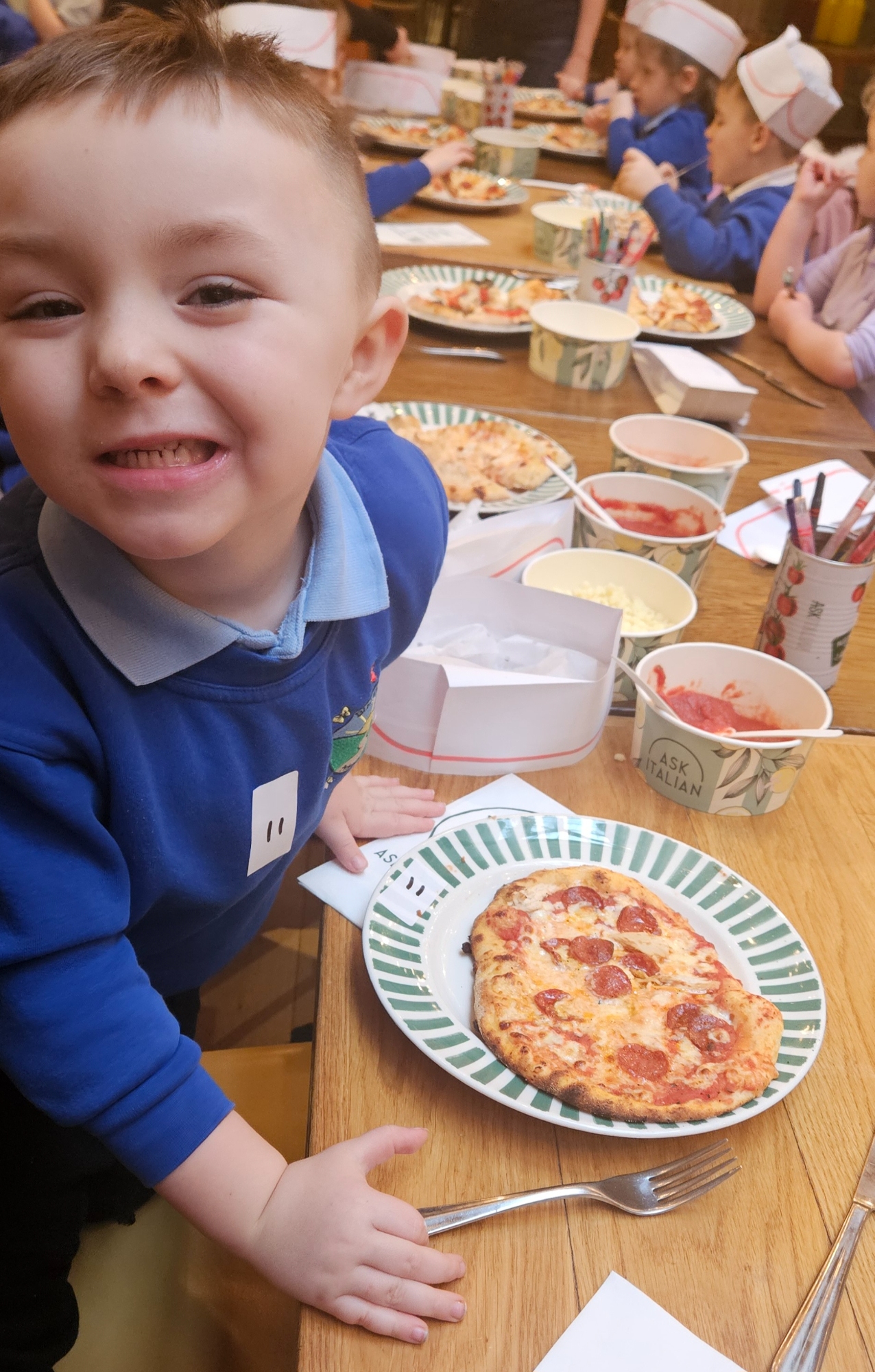 We became Pizza chefs for the day at Ask Italian restaurant. We chose our own toppings and watched as the chef put them in the big pizza oven.