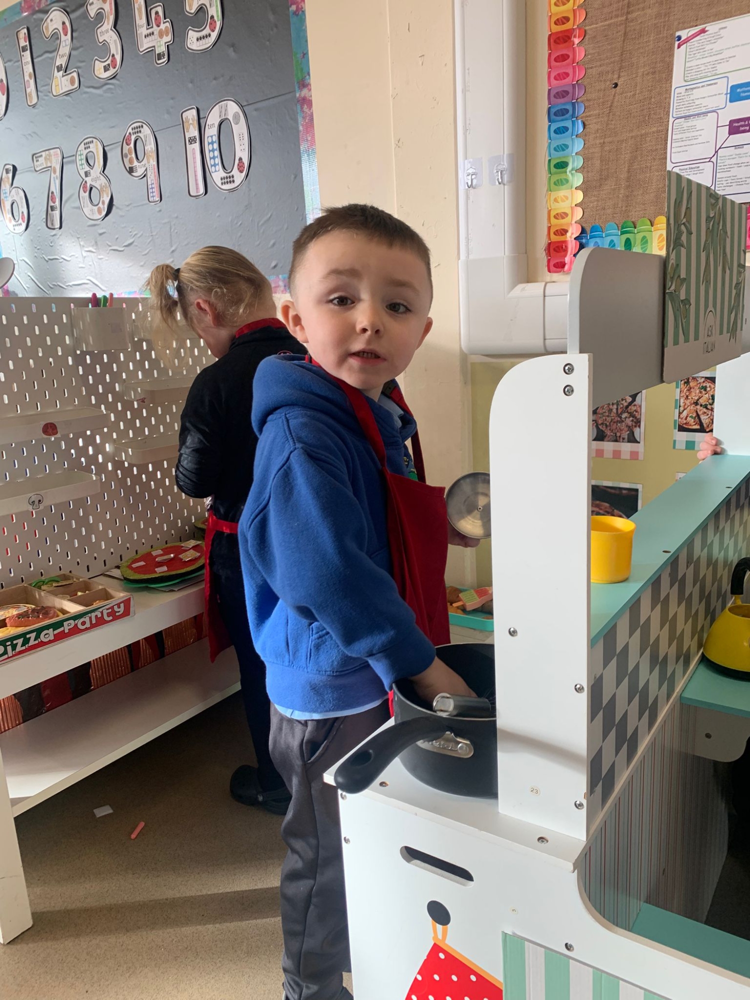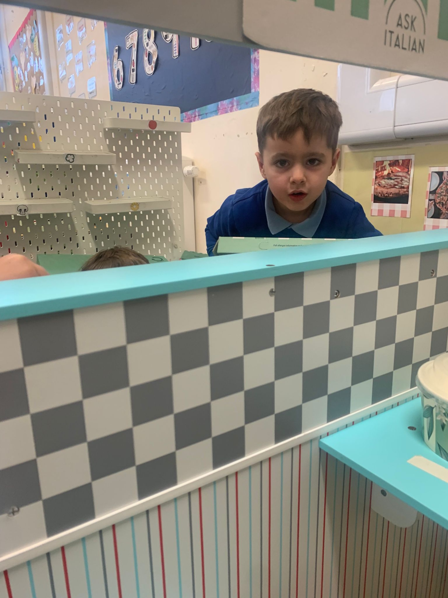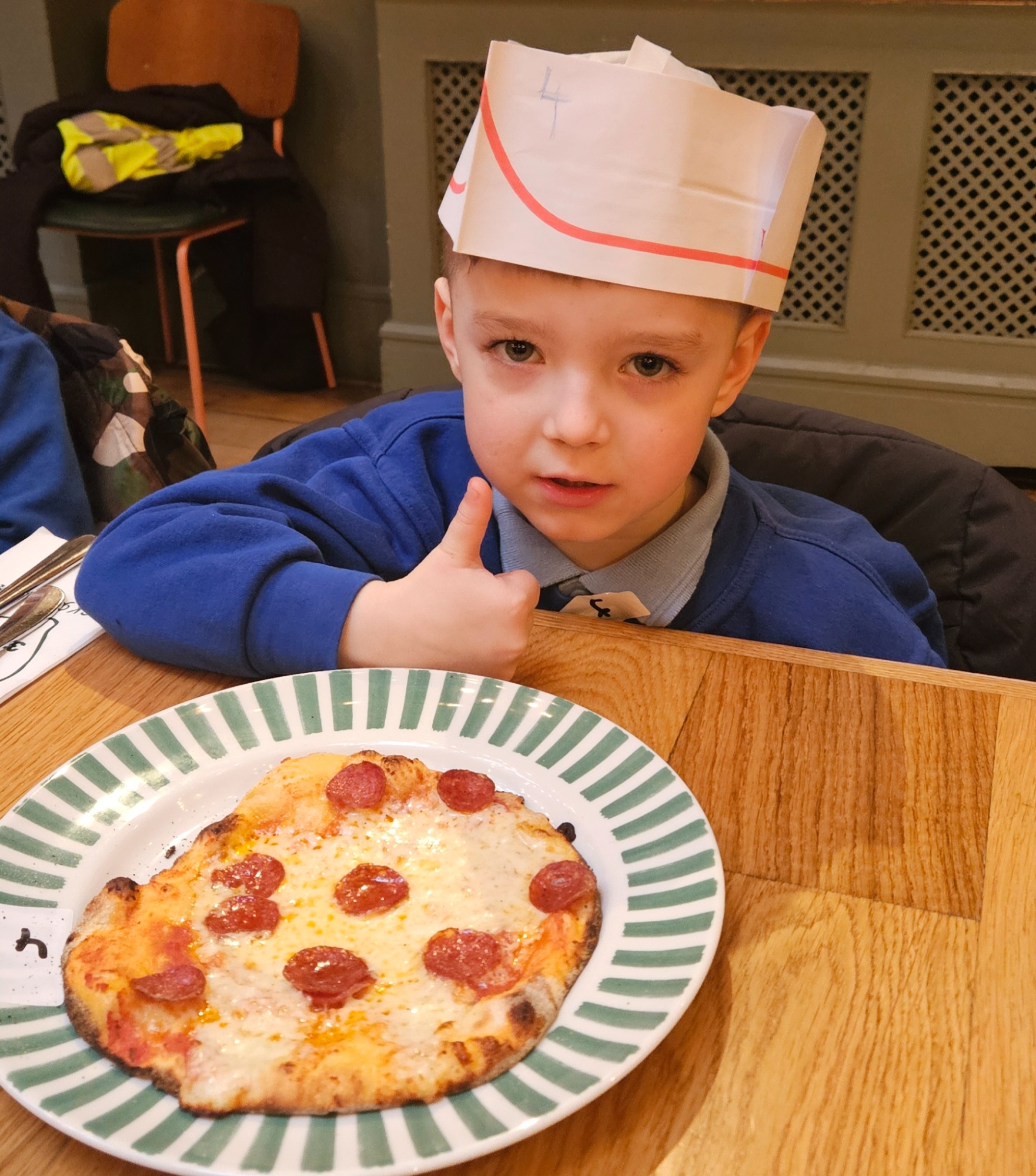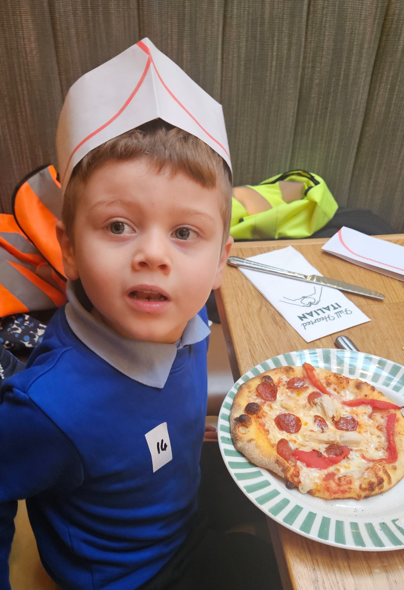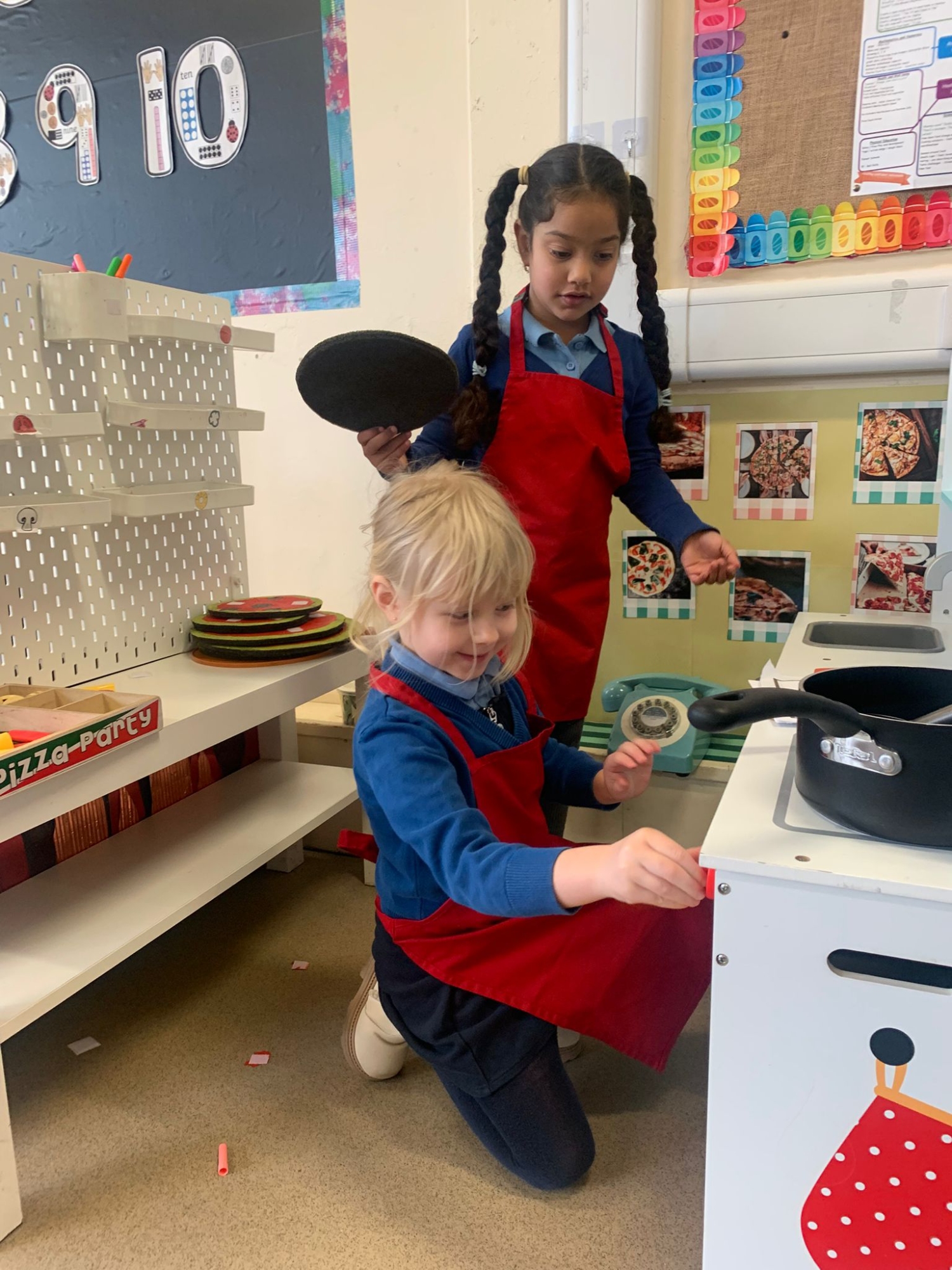 We made our own Pizza restaurant role play in class. We decided what roles we would be – a chef, a customer, a delivery driver or a server.
