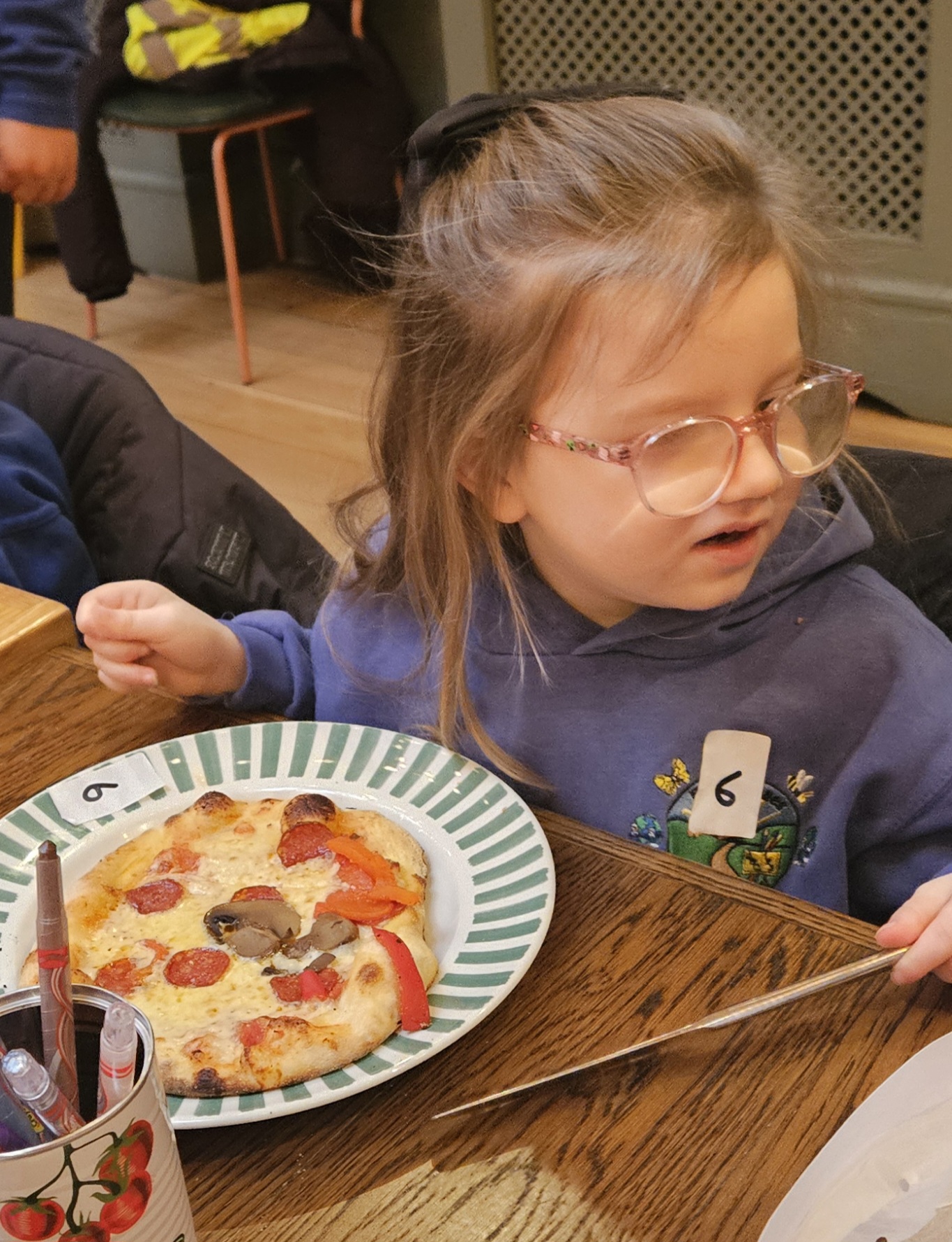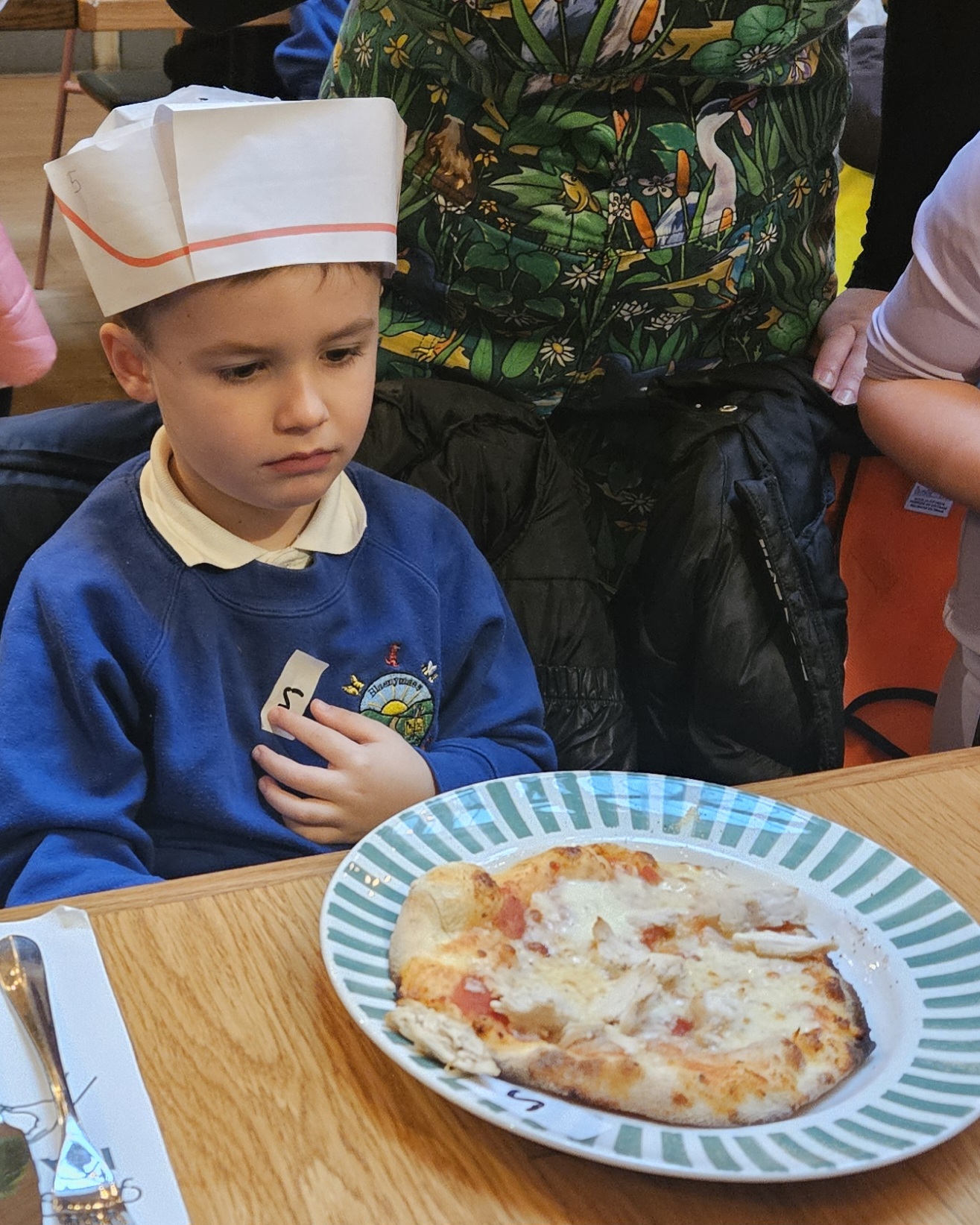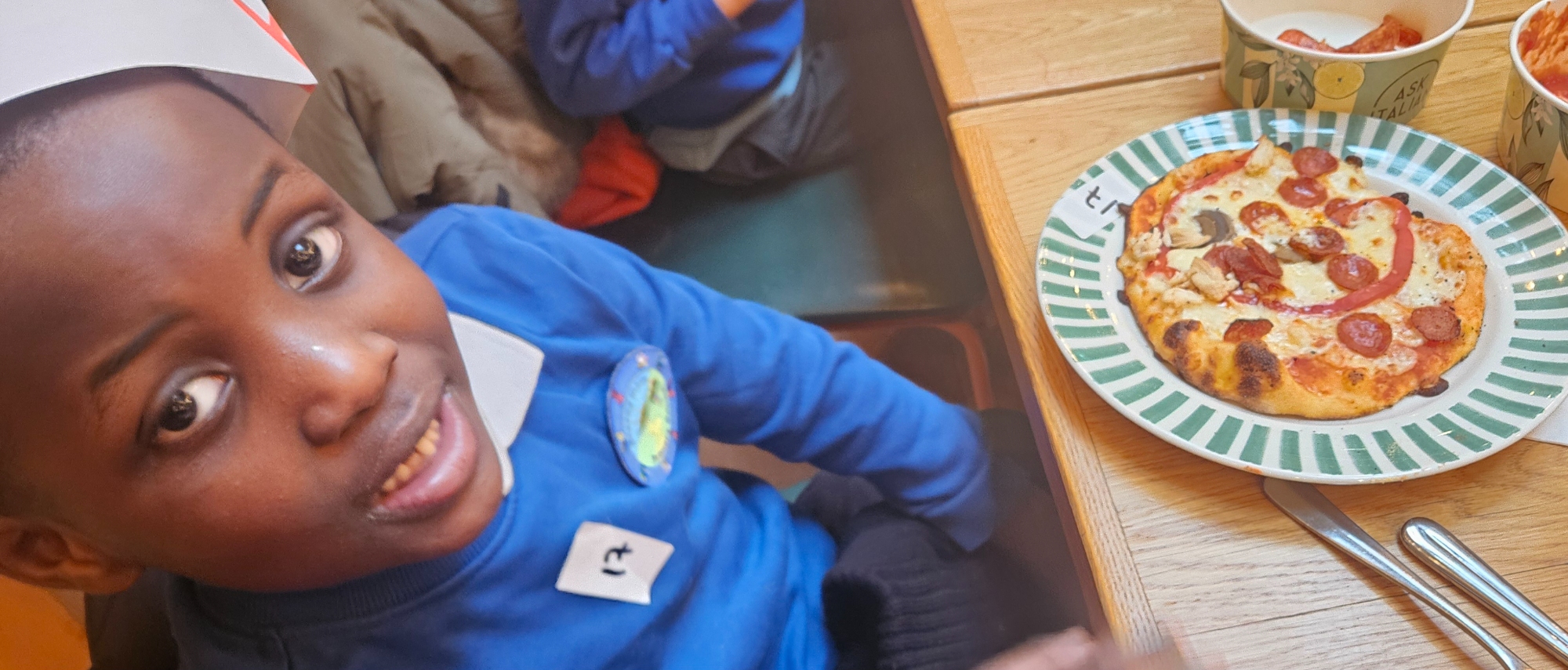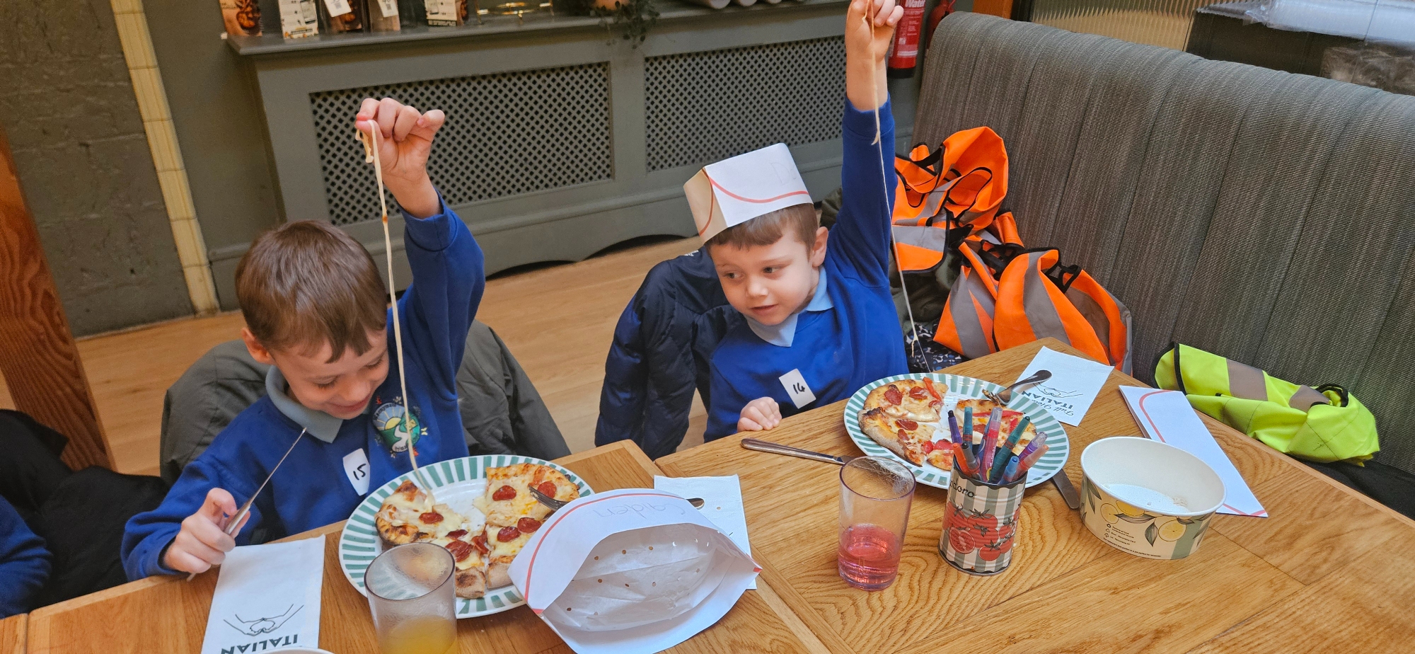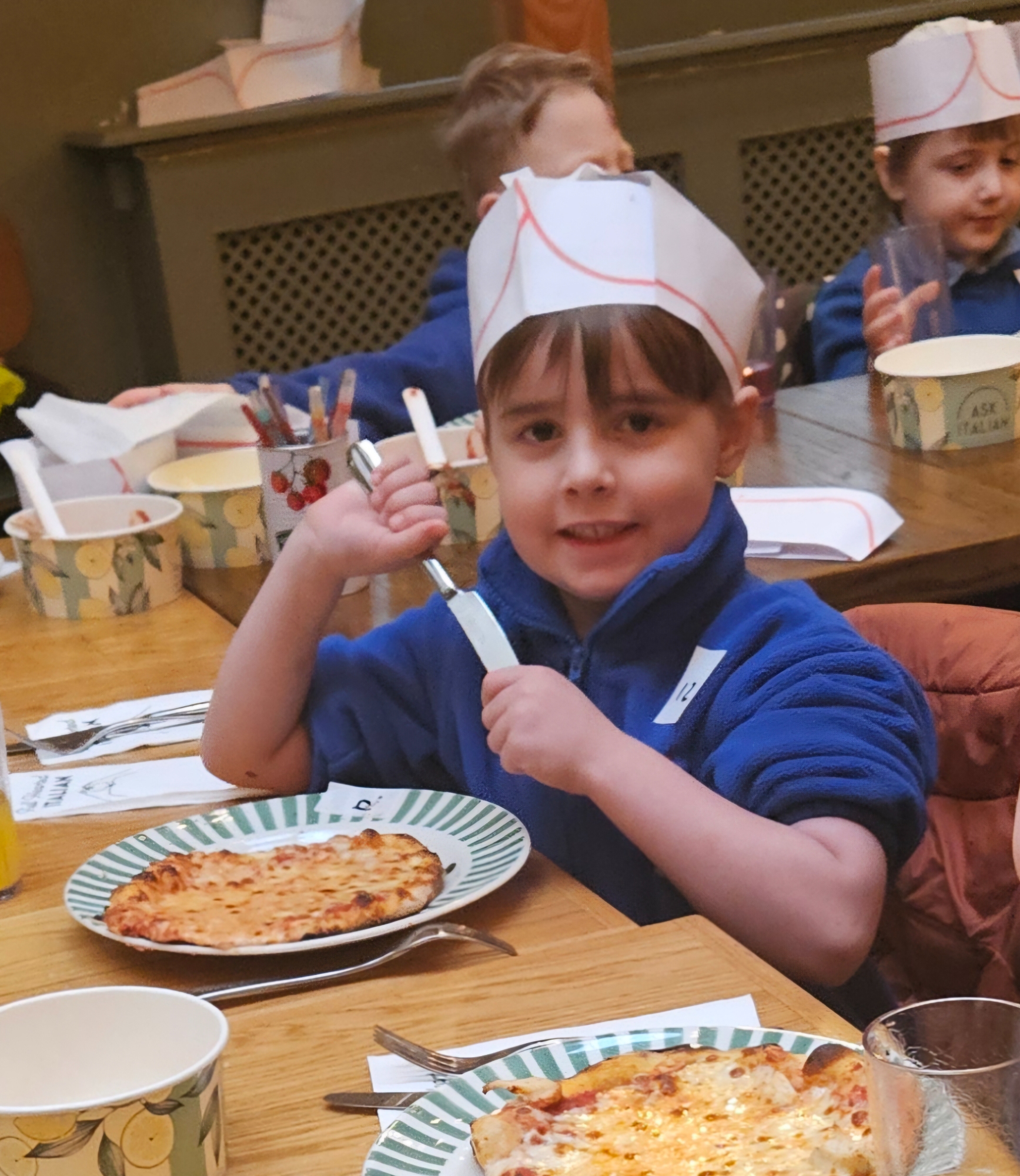 We made our own Pizza restaurant role play in class. We decided what roles we would be – a chef, a customer, a delivery driver or a server.