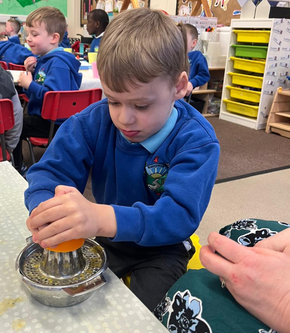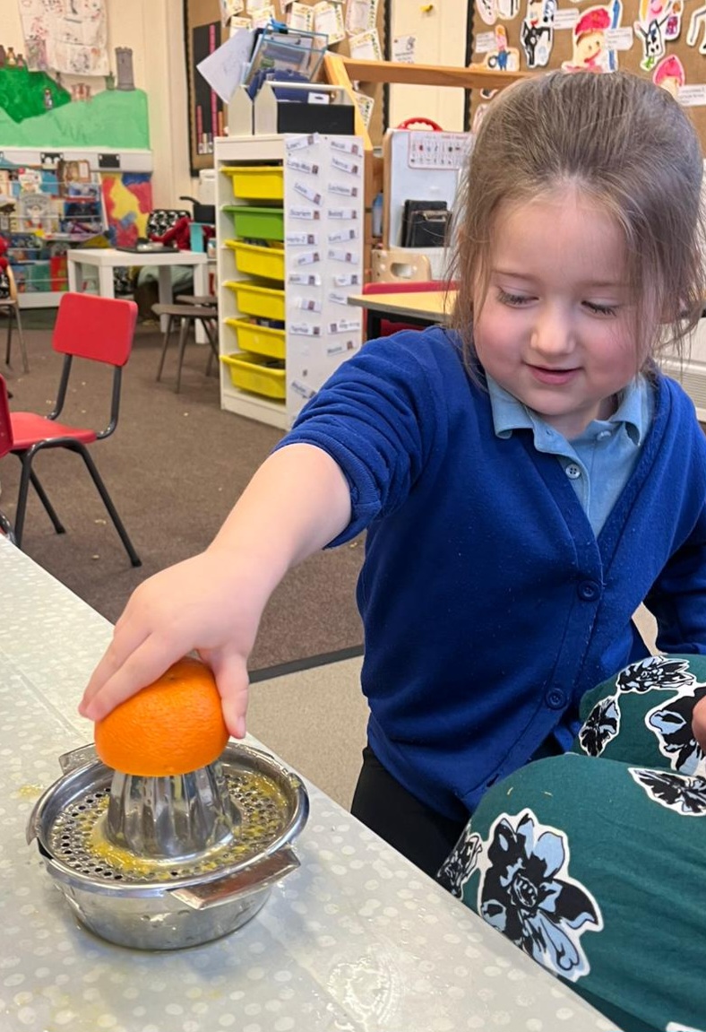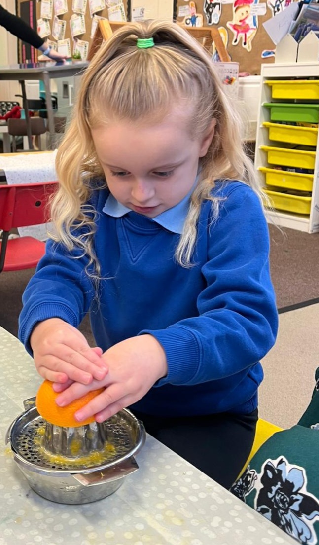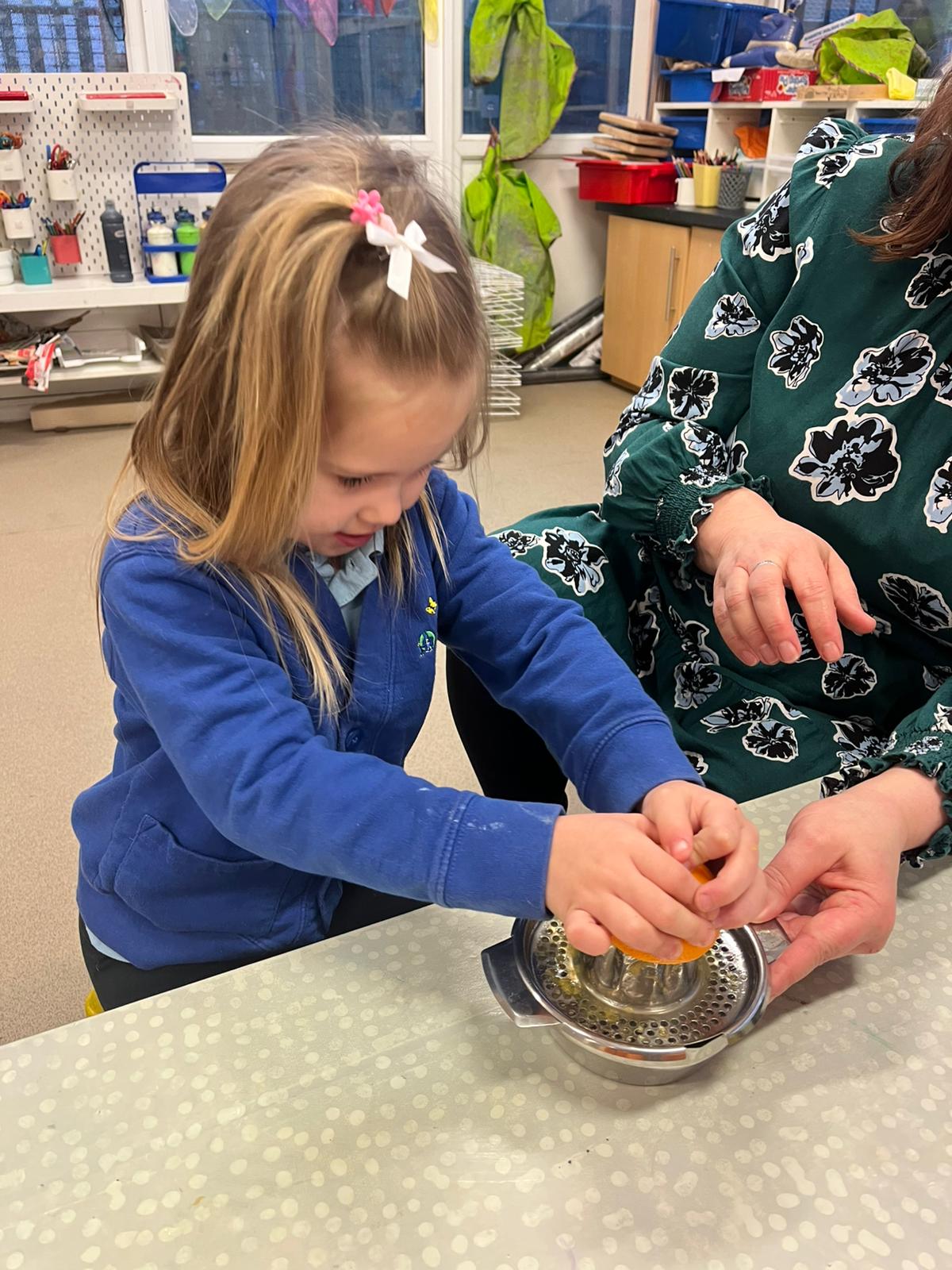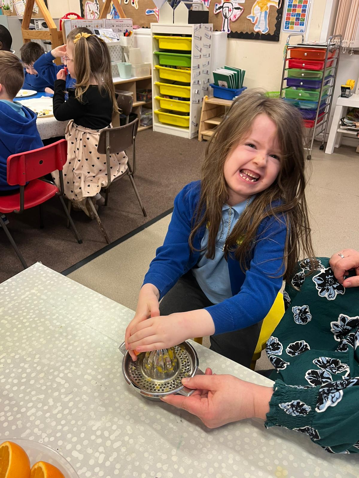 We gave our muscles a workout by making our own freshly squeezed orange juice.