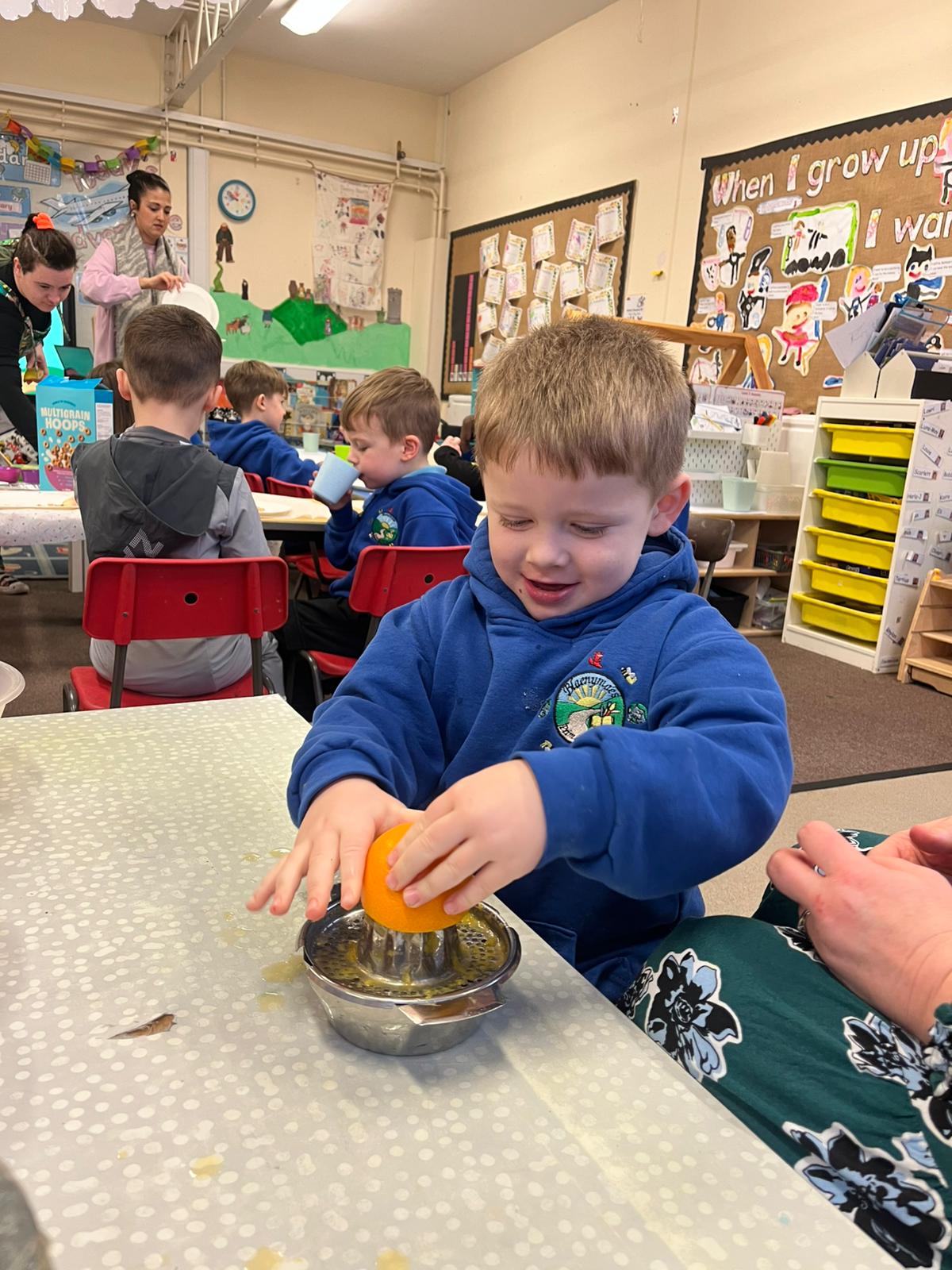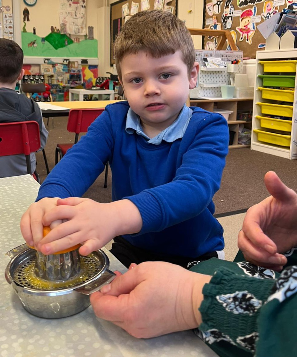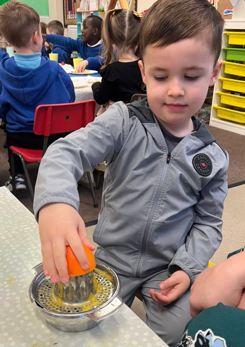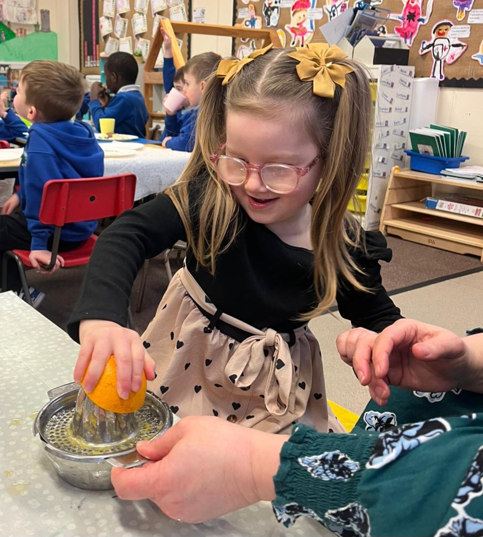 We gave our muscles a workout by making our own freshly squeezed orange juice.