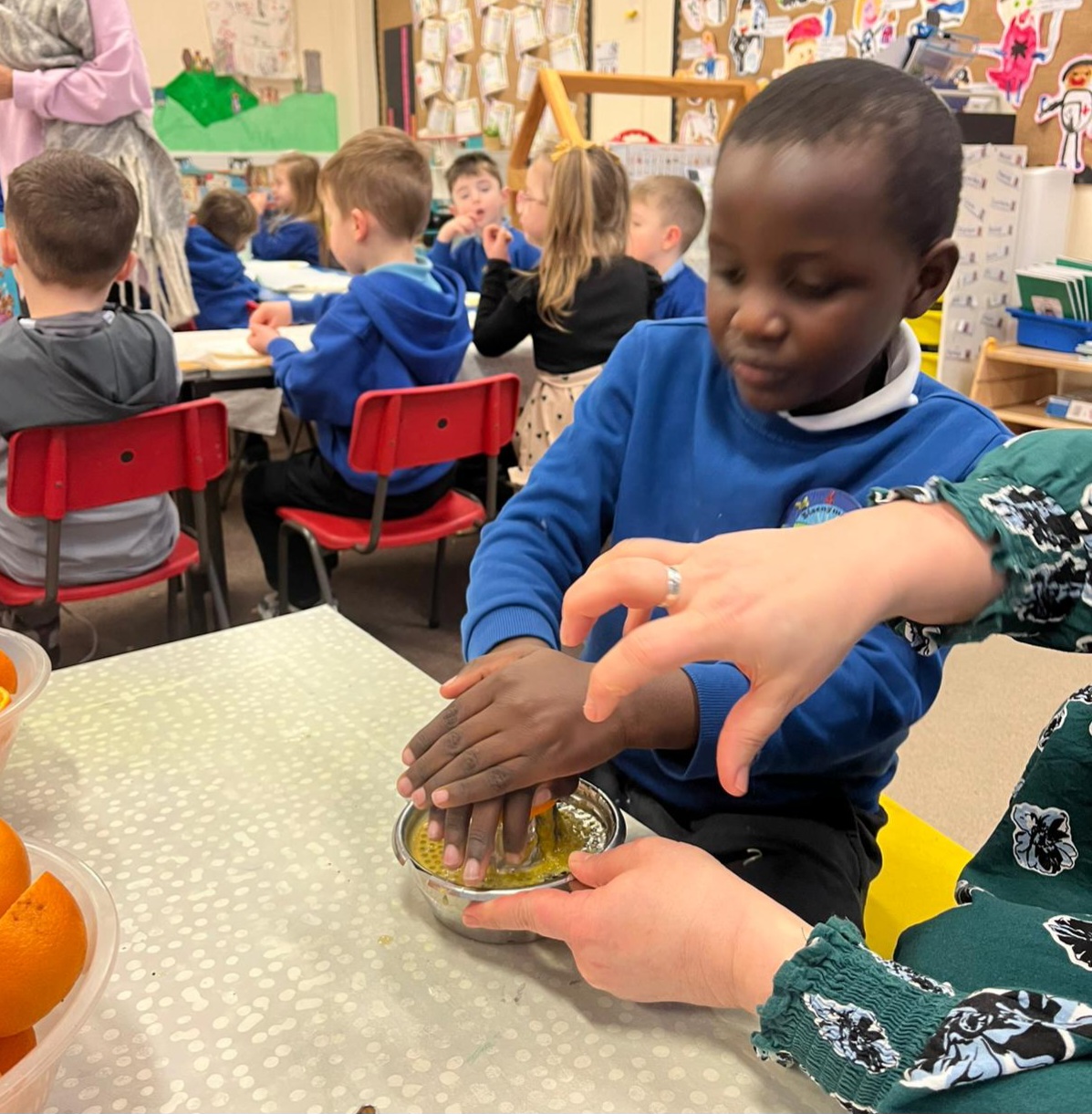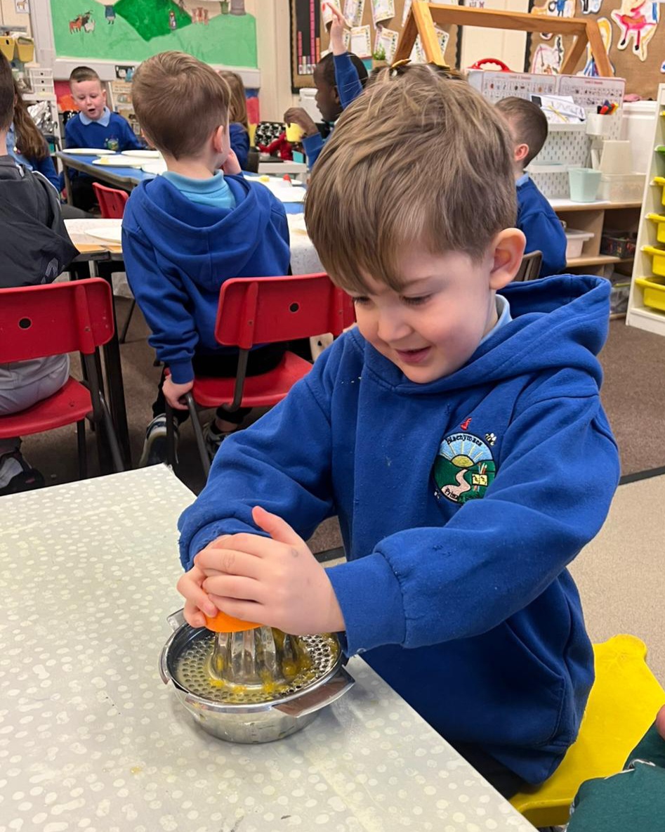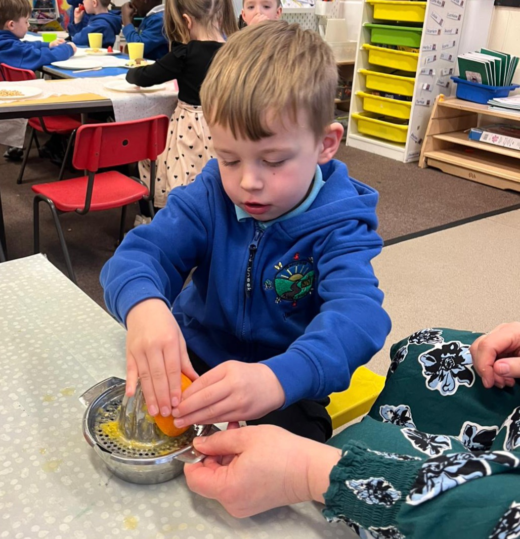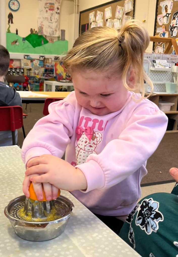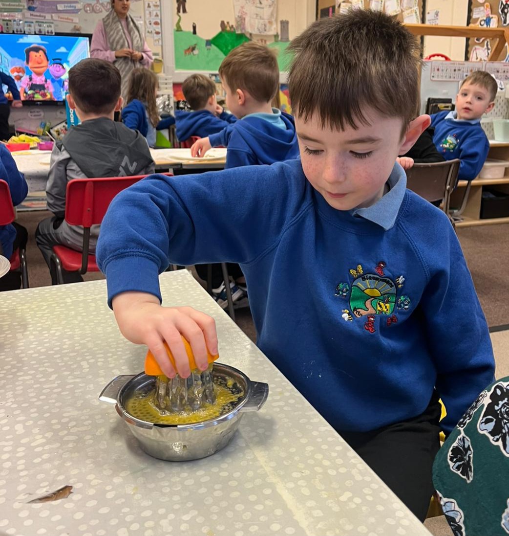 We gave our muscles a workout by making our own freshly squeezed orange juice.