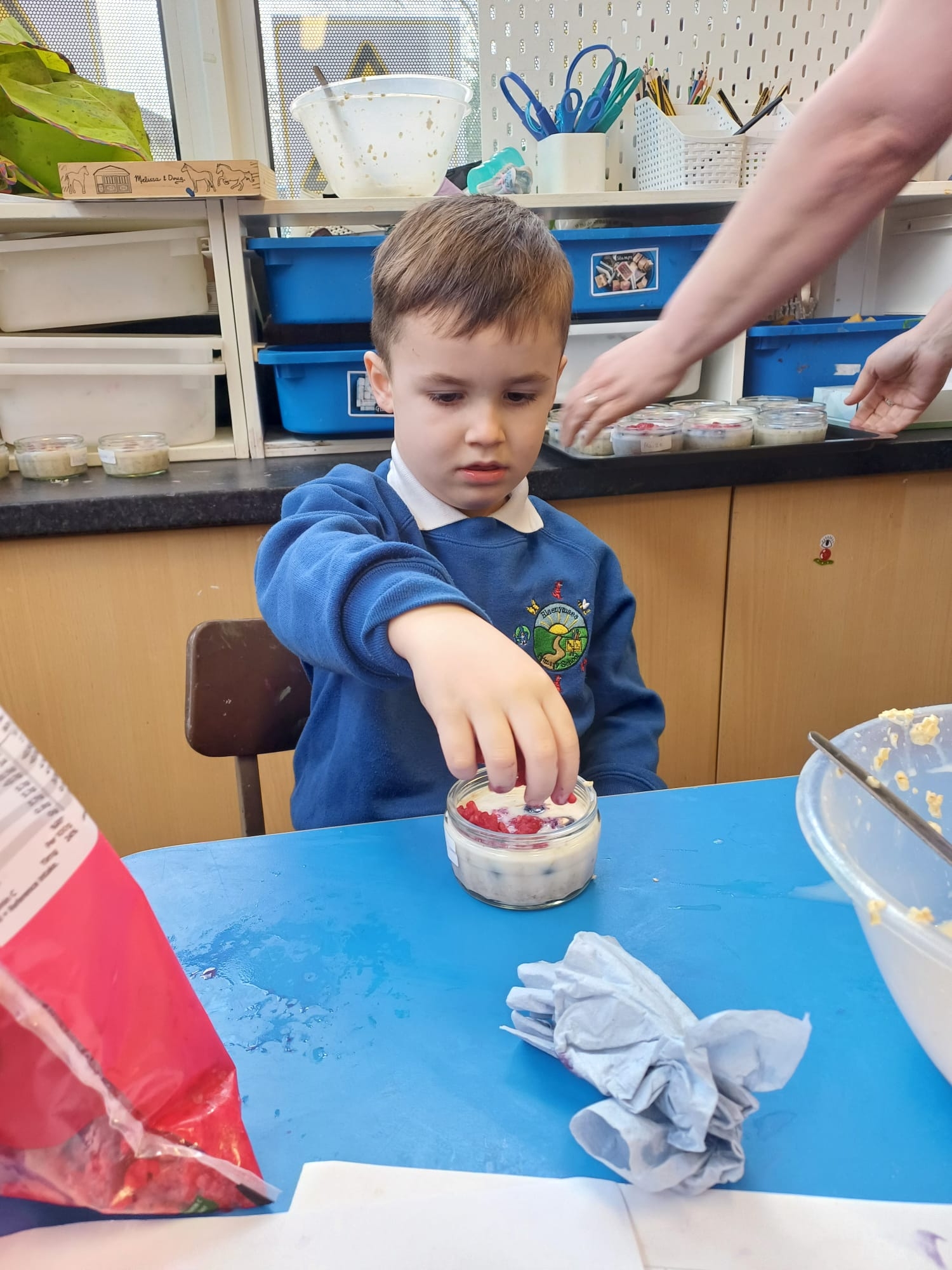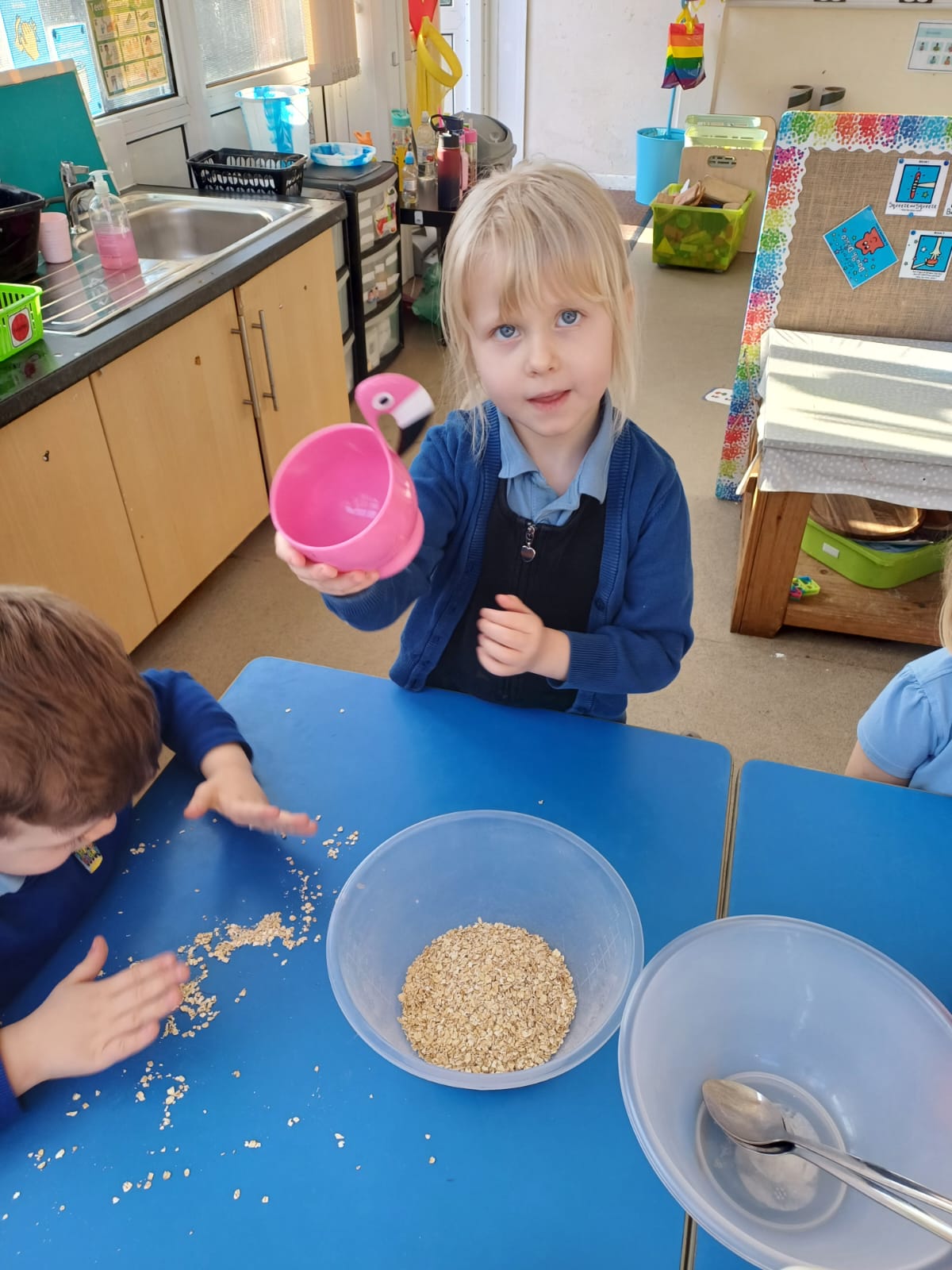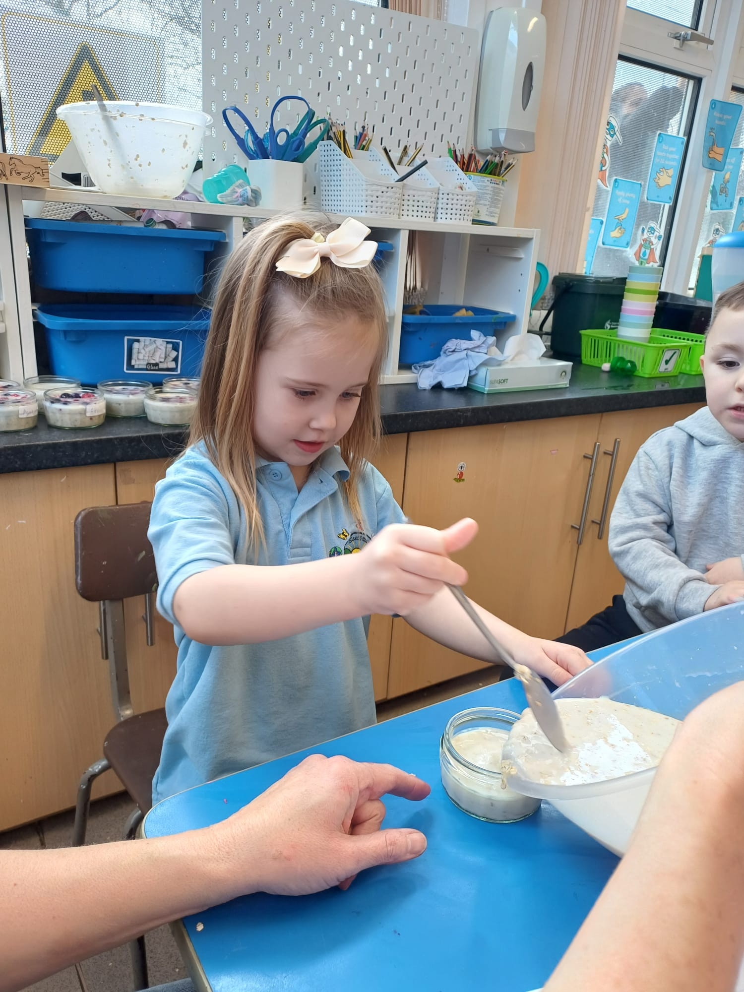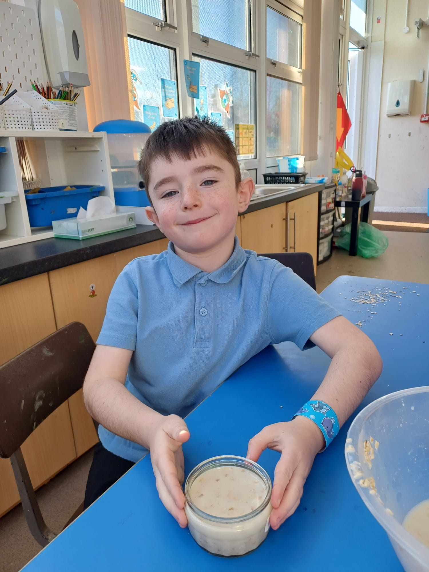We talked about different meals and how different foods keep us strong and healthy. We planned a class big breakfast by choosing healthy foods and making overnight oats to try.