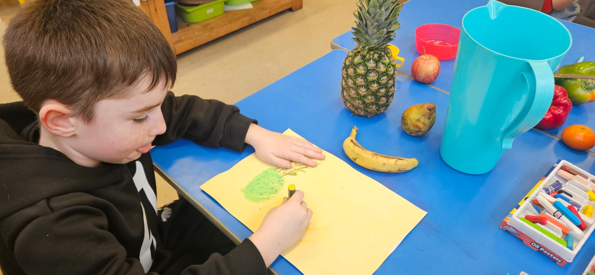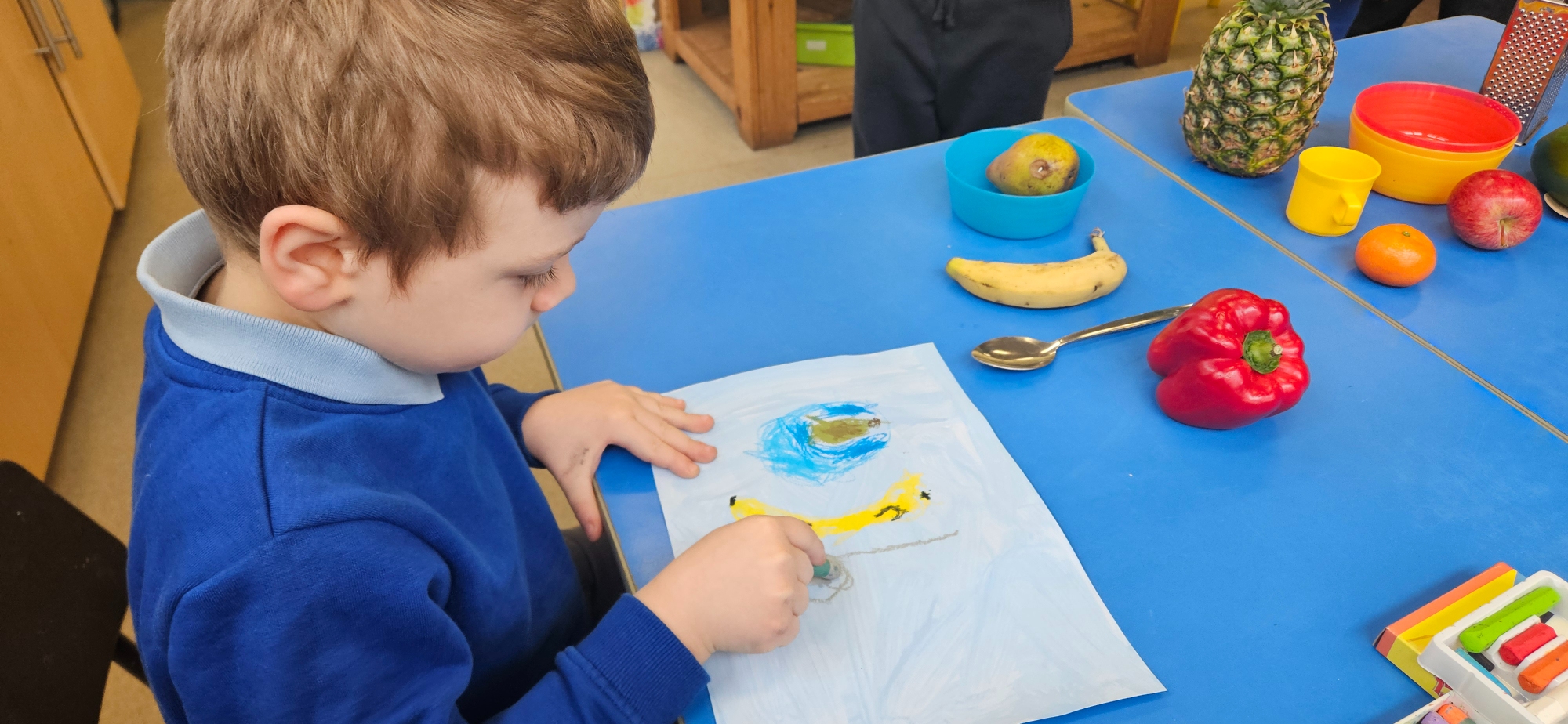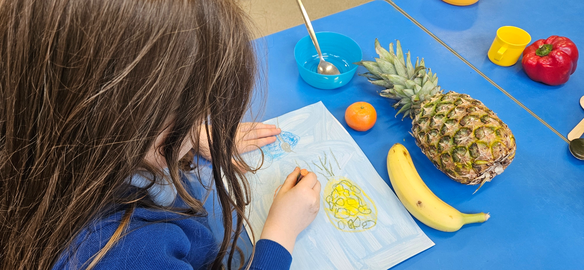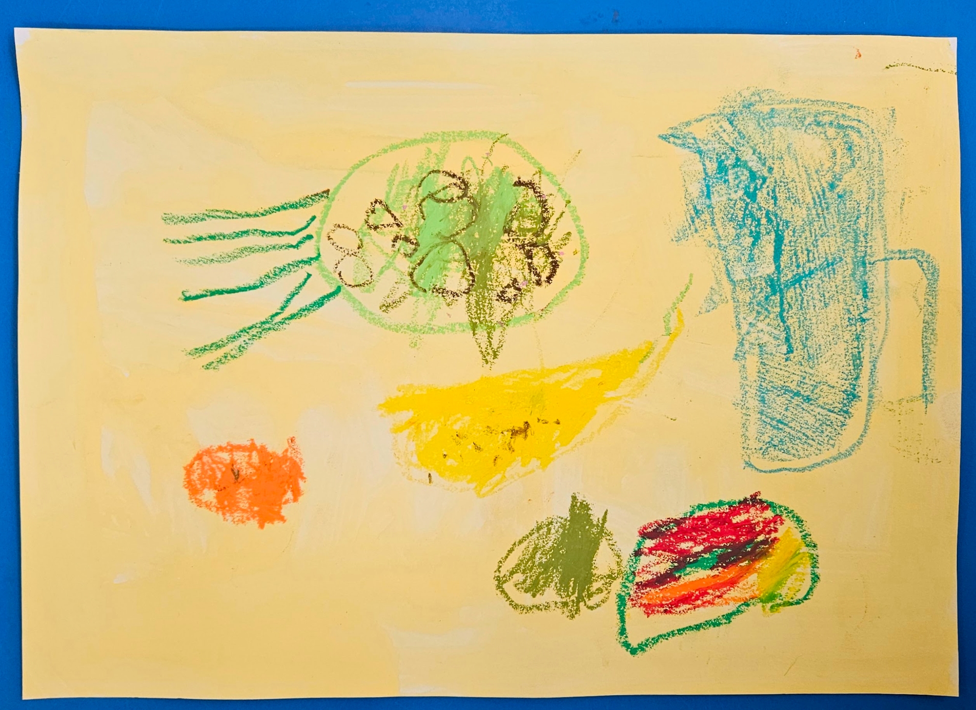 We looked at the art work of Welsh artist Vivienne Williams. She painted different food and objects form her kitchen.
