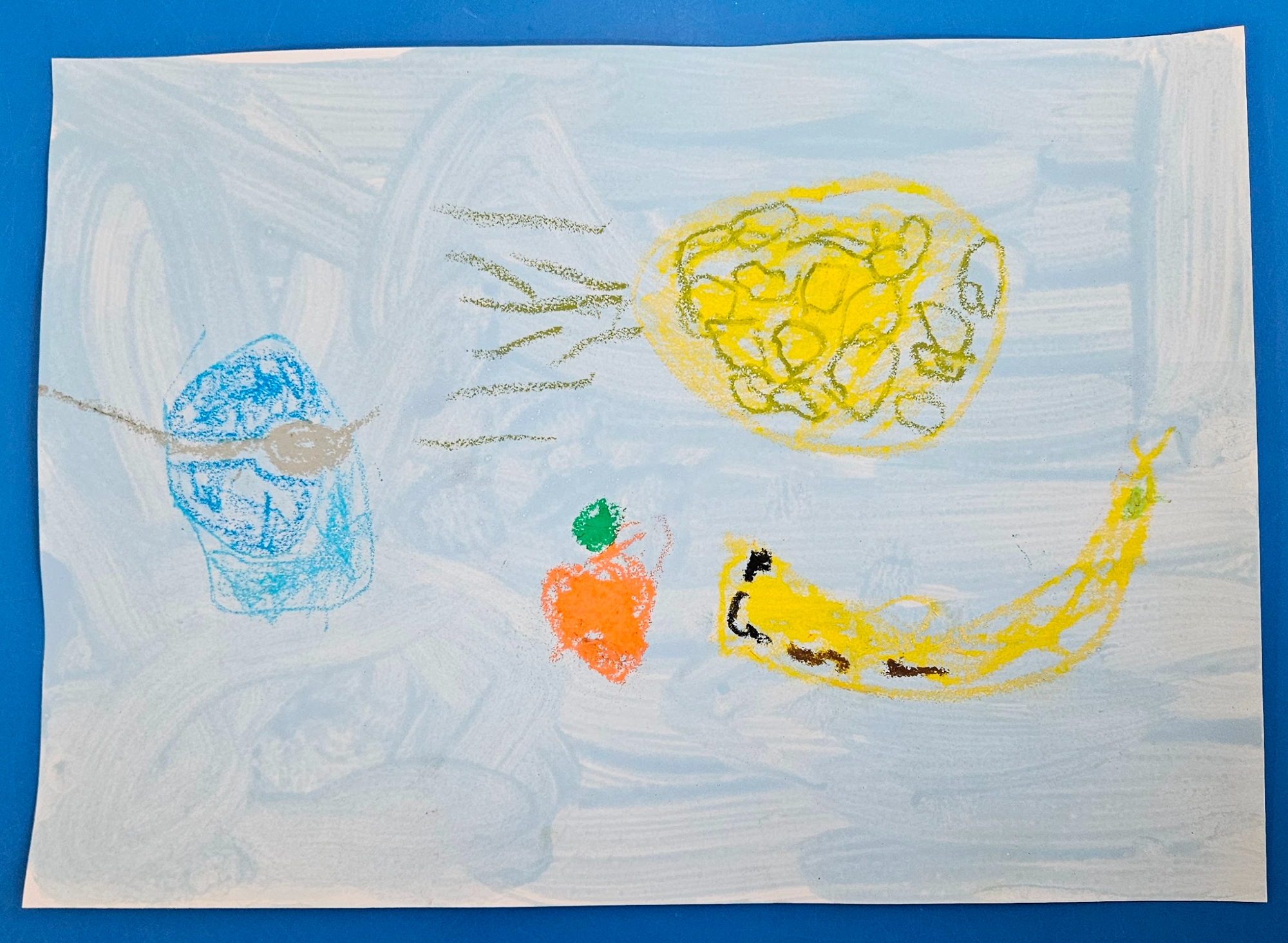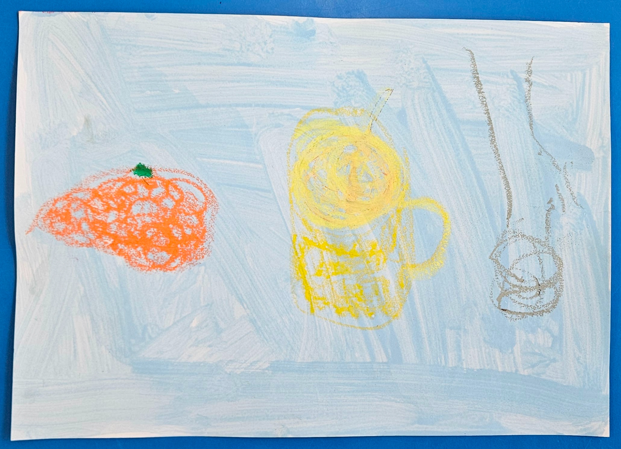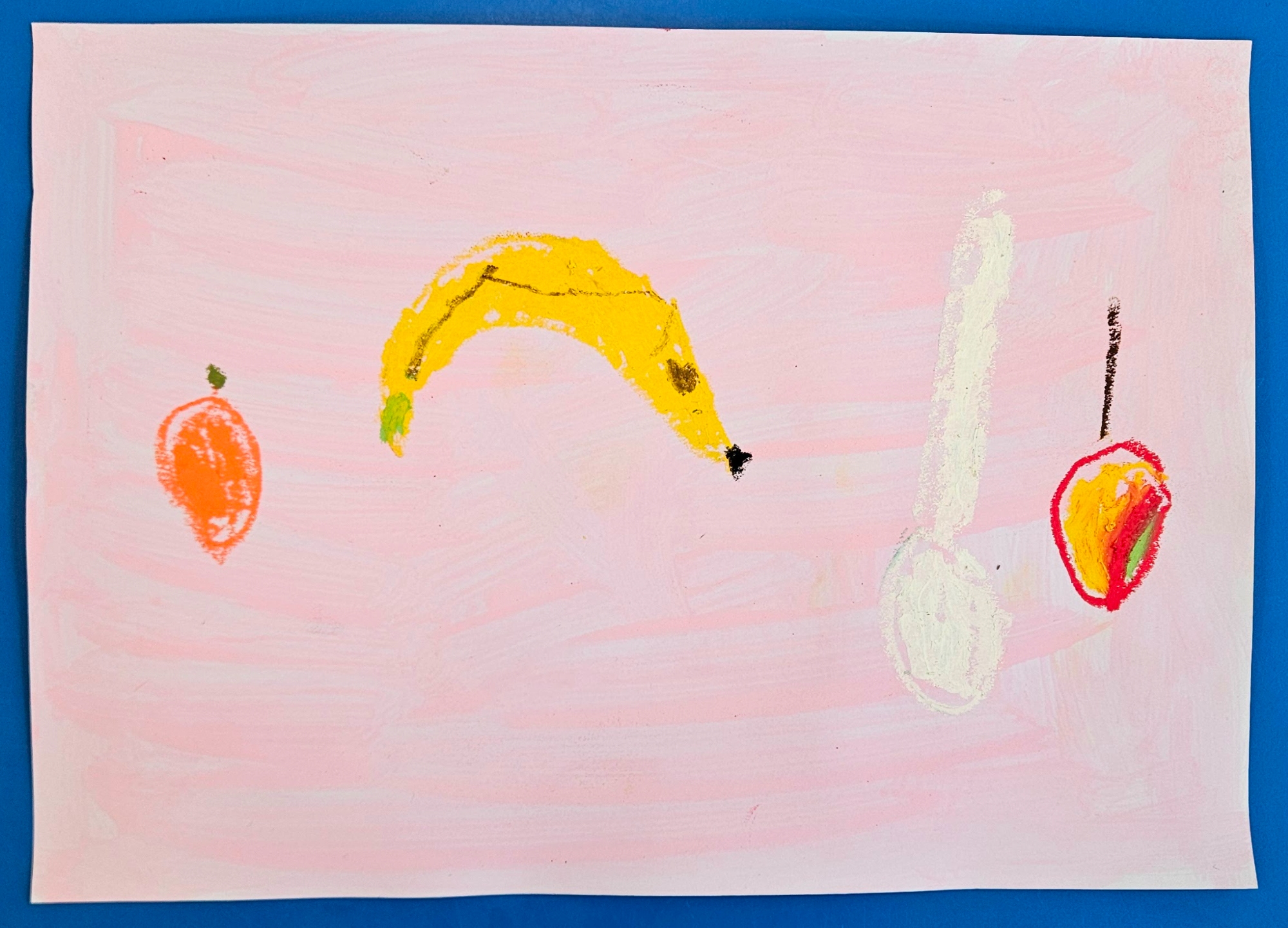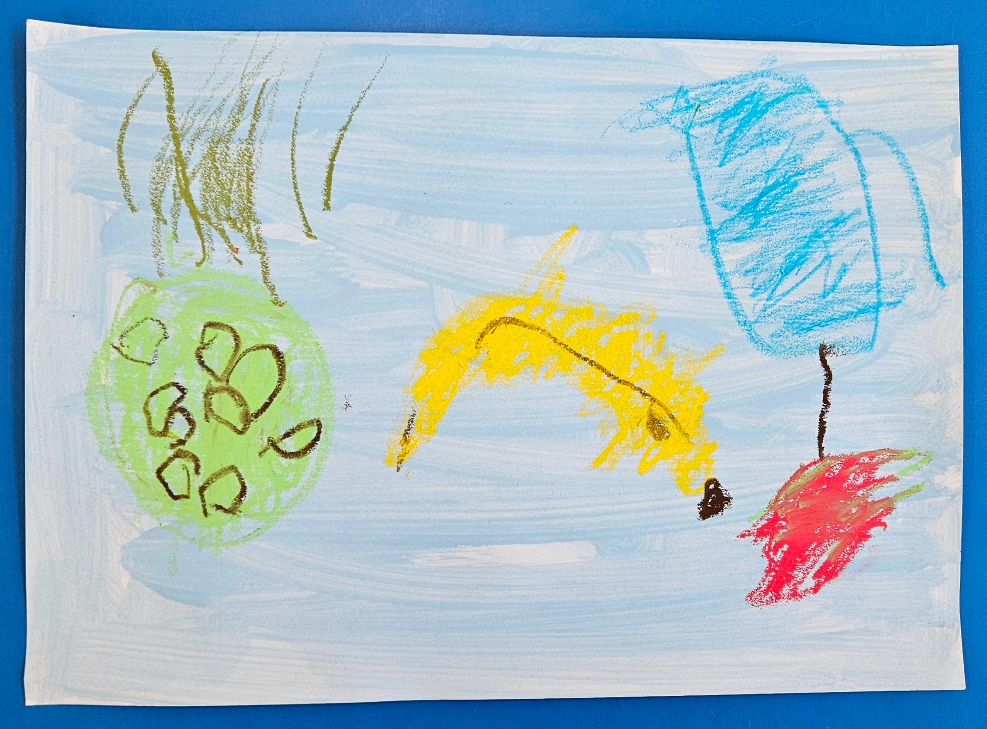 We made our own by choosing which colour paint we wanted for our background and then deciding what objects we wanted in our work. We then used oil pastels to draw them.