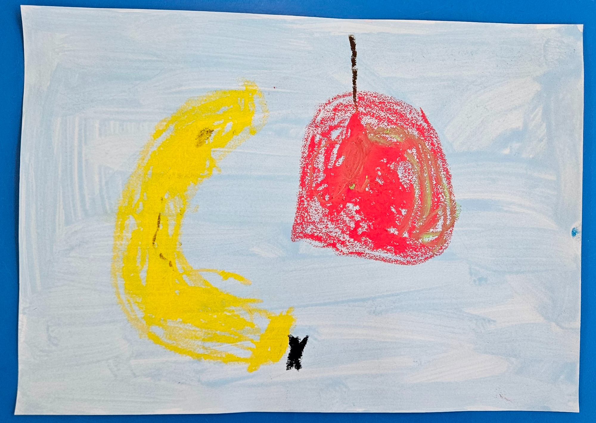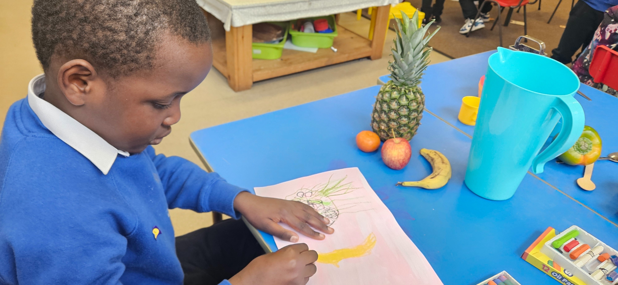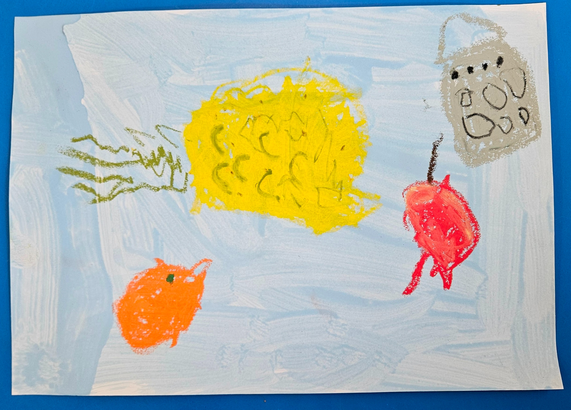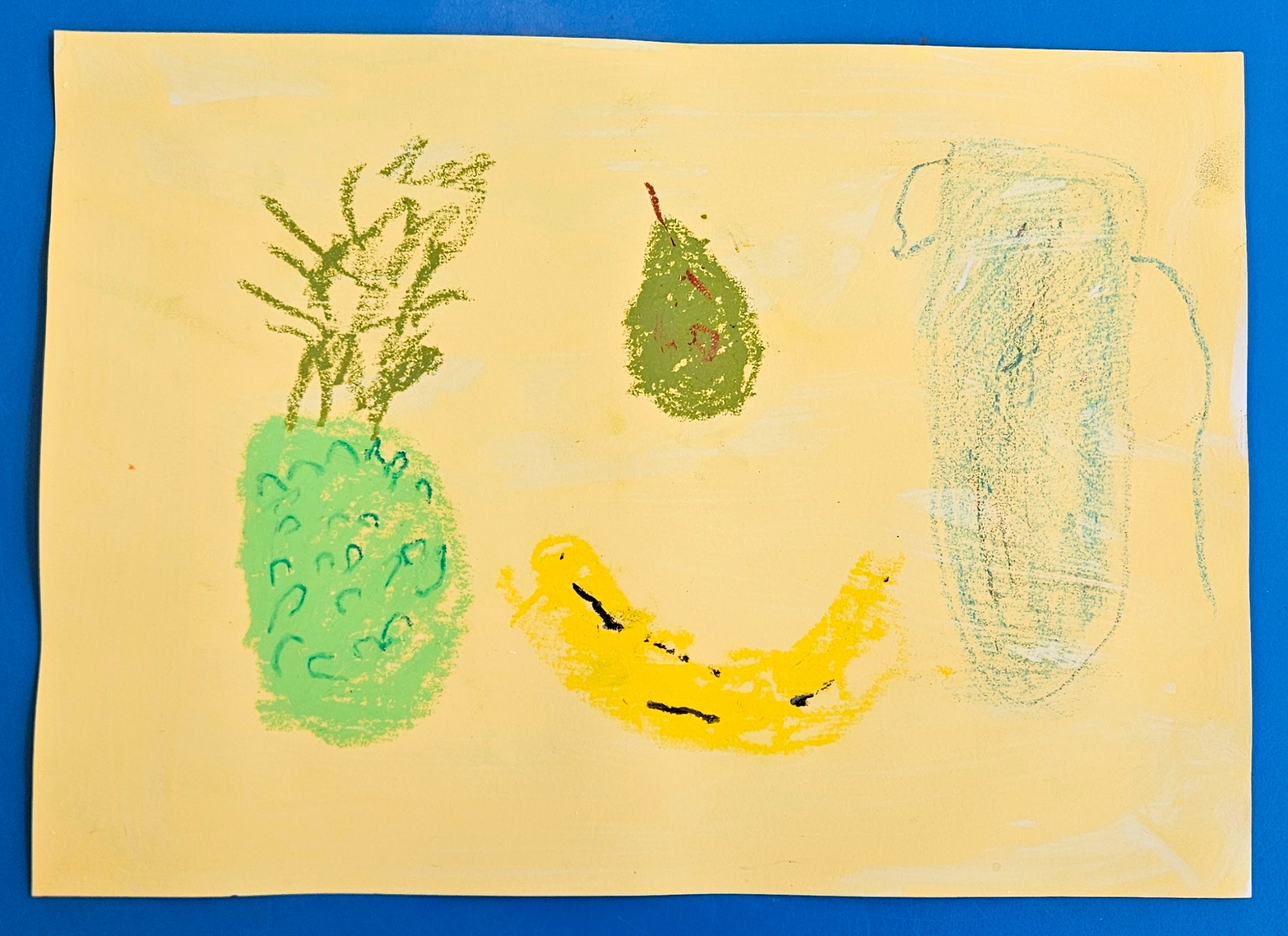 We made our own by choosing which colour paint we wanted for our background and then deciding what objects we wanted in our work. We then used oil pastels to draw them.