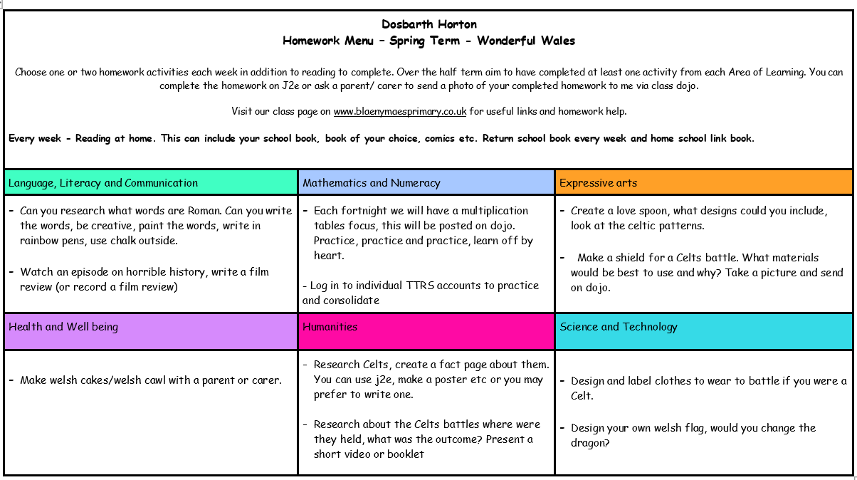 Home learning for Spring - Wonderful Wales