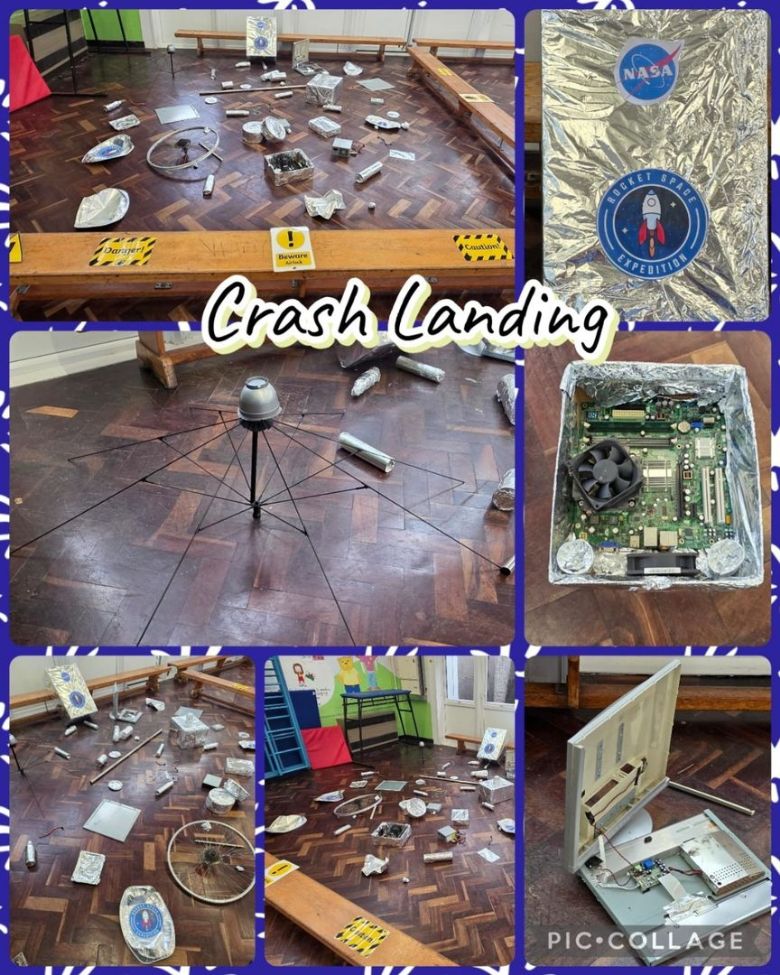 We then discovered that a rocket ship had landed in our playground and had been brought into the hall. Who did it belong to?